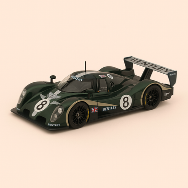 La Bentley Speed 8 reste la dernière voiture britannique à avoir remporté les 24 Heures du Mans en 2003, après 73 ans d'absence. Ce modèle en miniature est particulièrement recherché car il représente le retour triomphal de Bentley en endurance, avec Tom Kristensen au volant. C'est aussi la voiture qui a relancé l'intérêt pour les miniatures Bentley de course.