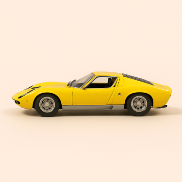 La Lamborghini Miura demeure l'un des modèles les plus recherchés en miniature. Avec son moteur V12 transversal central arrière, ses lignes sublimes et ses célèbres "cils" autour des phares, elle représente une révolution technique et esthétique. Les miniatures de la Miura, particulièrement dans sa version SV (Sport Veloce) la plus aboutie, capturent l'essence de cette voiture qui a redéfini les standards de performance et de beauté automobile. Les collectionneurs apprécient particulièrement les reproductions dans les teintes orange "Arancio Miura" ou rouge "Rosso Corsa".