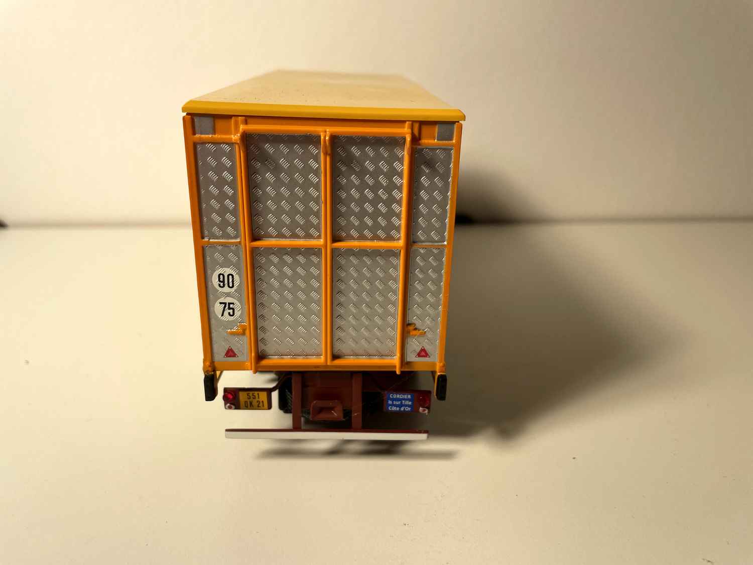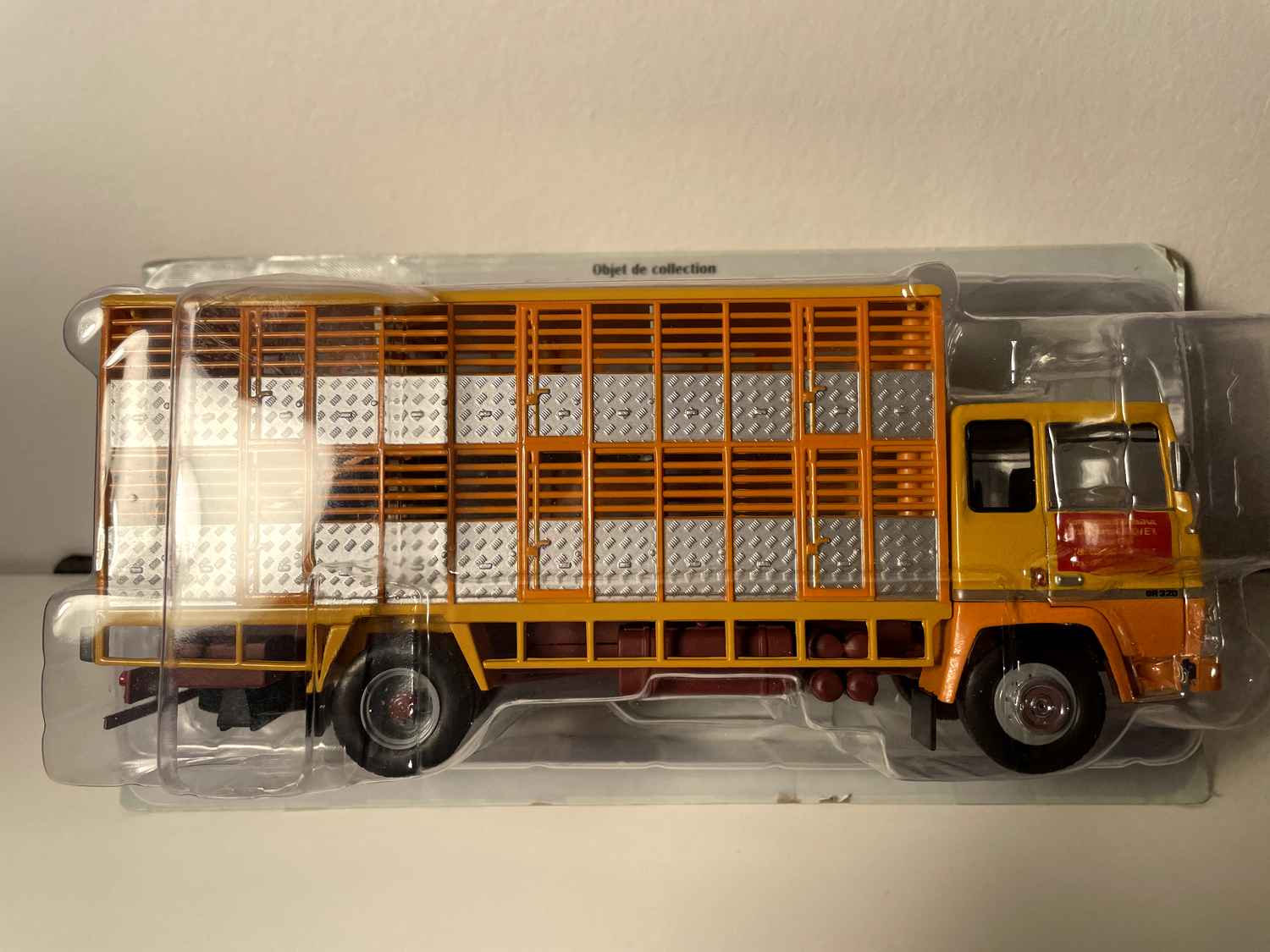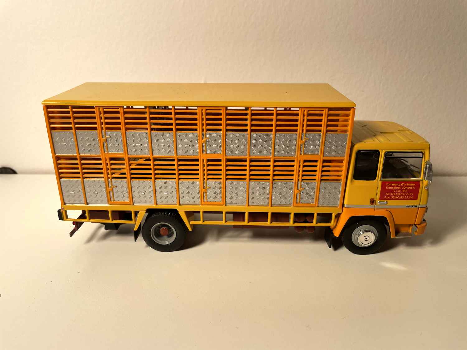 Der Berliet GR 320 Schaftransporter erinnert an ein sich wandelndes ländliches Frankreich, in dem Viehmärkte nach wie vor bedeutende wirtschaftliche und soziale Ereignisse waren. Diese gelben Lkw, deren Farbe oft aufgrund ihrer Sichtbarkeit gewählt wurde, durchquerten wöchentlich die ländlichen Straßen und transportierten Schafe, Ziegen und manchmal Schweine zu den traditionellen Märkten.