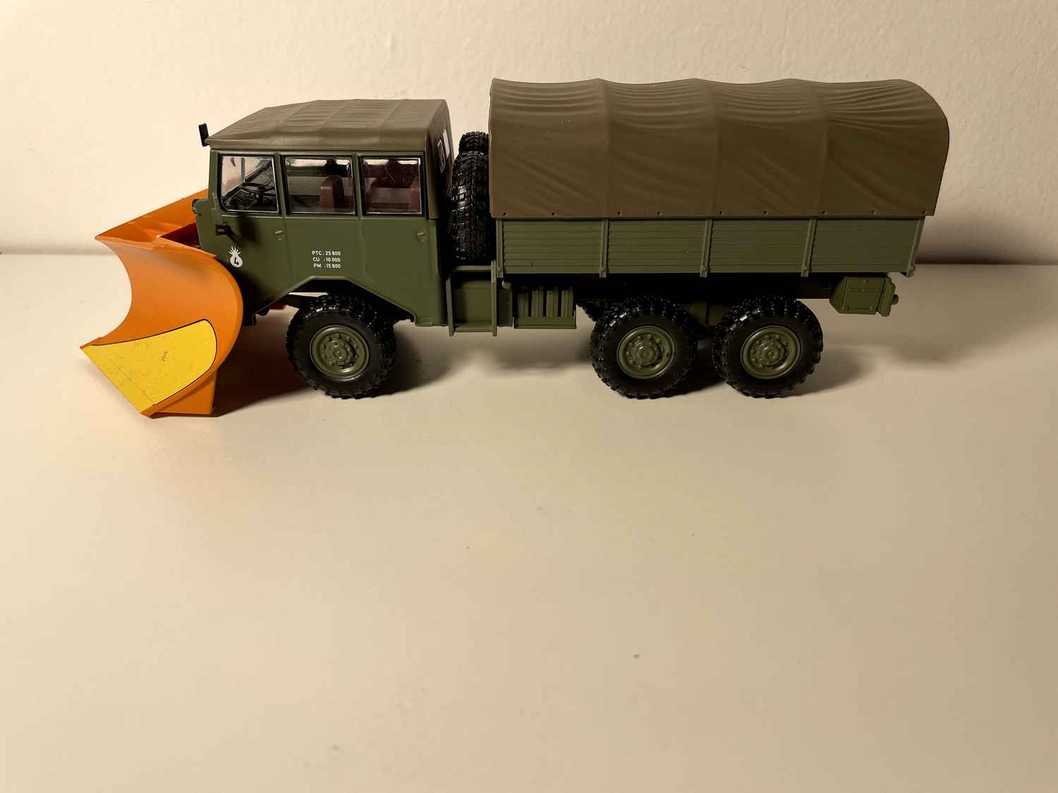 Diese Berliet GBU Schneepflug-Miniatur findet natürlich ihren Platz neben anderen Miniatur-Lkw aus der gleichen Zeit. Sie fügt sich perfekt in eine Sammlung von militärischen Fahrzeugen ein und bringt eine oft übersehene, aber wesentliche utilitaristische Dimension.
