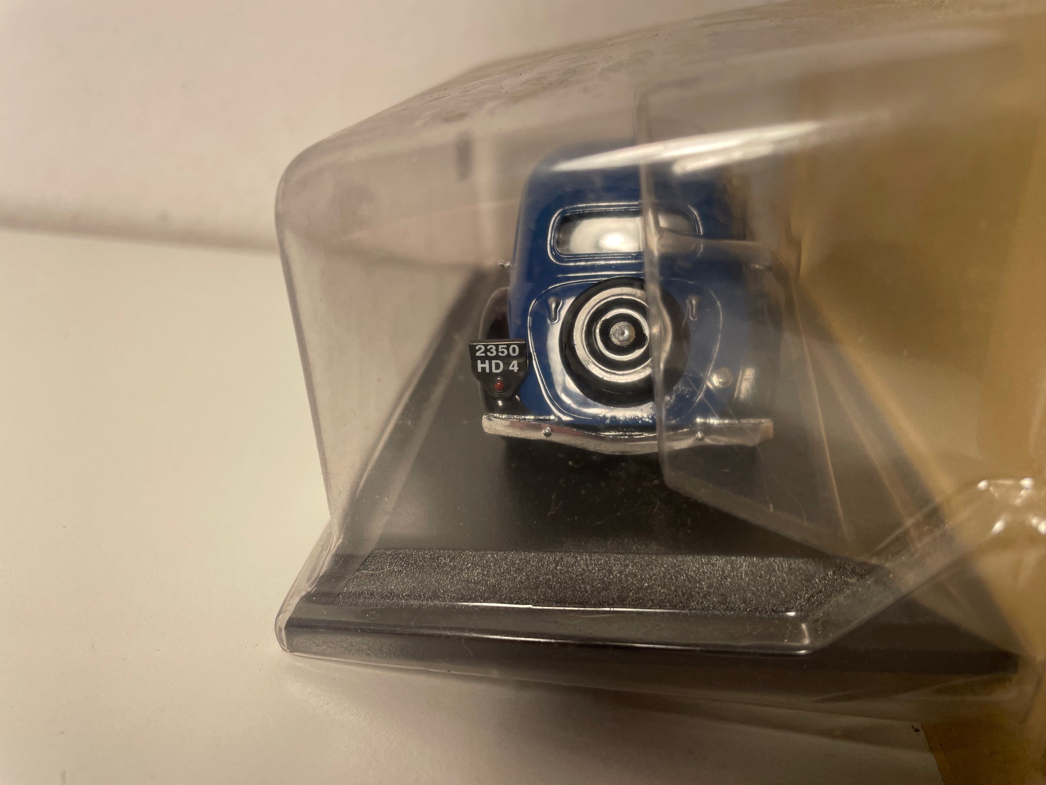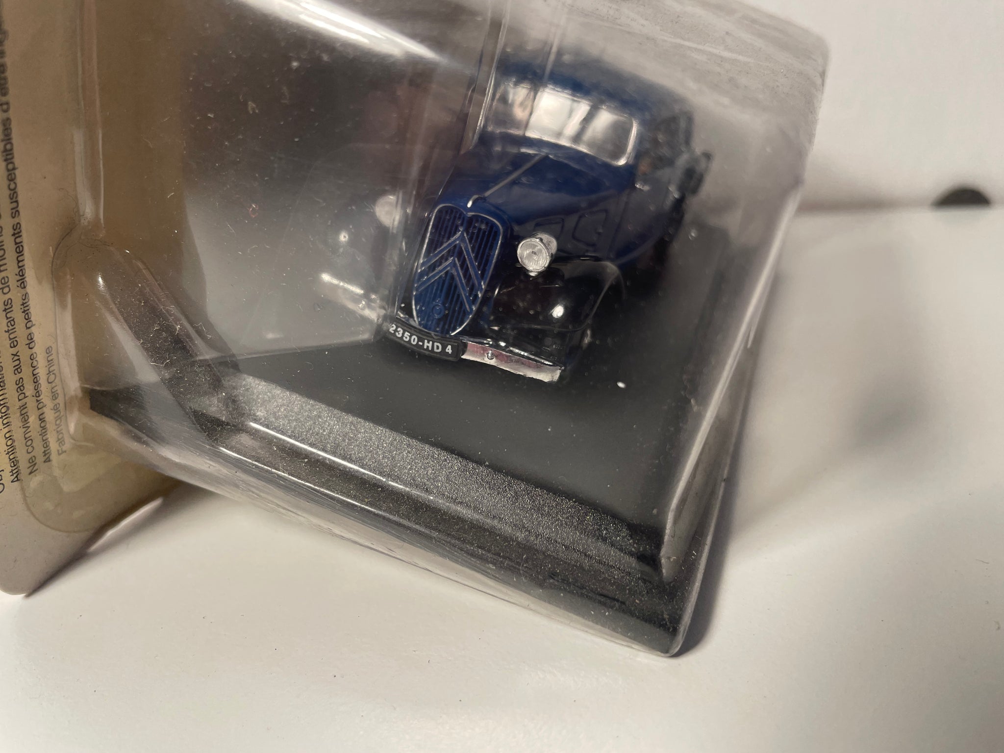 Entdecken Sie diese wunderschöne Nachbildung der Citroën Traction Avant 7C von 1938, treu wiedergegeben in ihrem blauen Vintage-Gewand. Diese Miniatur im Maßstab 1/43 erfasst den revolutionären Geist eines der ikonischsten Modelle der französischen Automobilgeschichte.