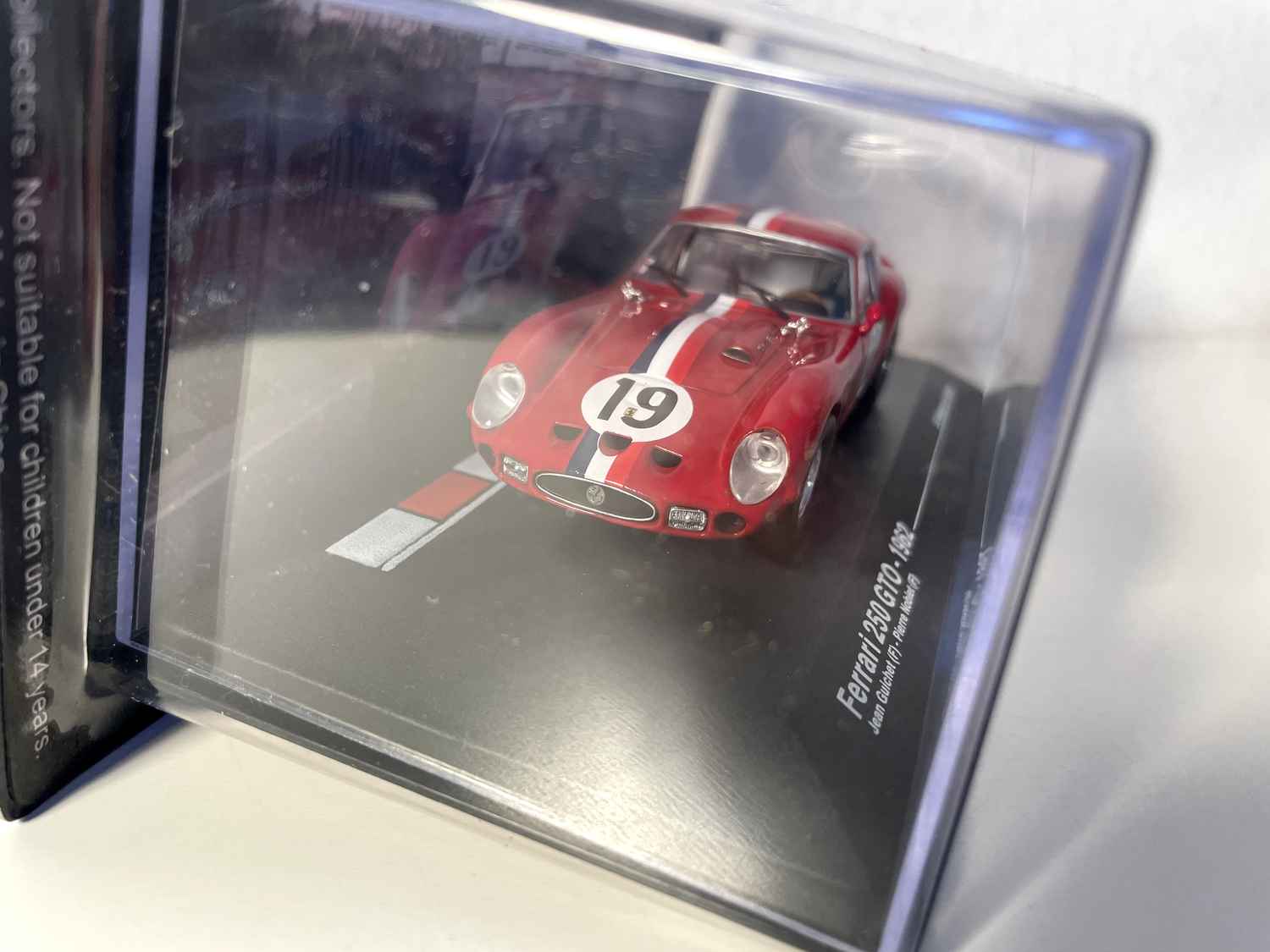 Um Ihre Sammlung zu bereichern, harmoniert dieser GTO perfekt mit anderen Rennwagen der gleichen Ära, insbesondere dem Porsche 904 oder Ford GT40, die ebenfalls die Rennstrecken der 1960er Jahre dominierten. Liebhaber von Miniaturen der 1960er Jahre finden darin eine ideale Ergänzung zu ihren Jaguar E-Type oder Aston Martin DB5.
