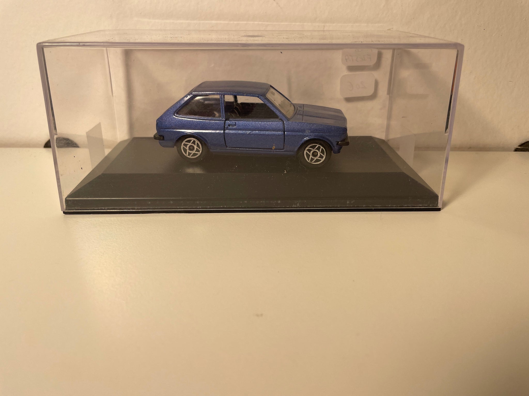 Dieser 1/43 Maßstab blaue Ford Fiesta repräsentiert eines der ikonischsten Modelle beliebter europäischer Automobile. Mit seinem charakteristischen blauen Farbton und den sorgfältigen Ausführungen fängt diese Miniatur perfekt den Geist des Stadtwagens ein, der das Segment der Kleinwagen in den 1970er Jahren revolutionierte.