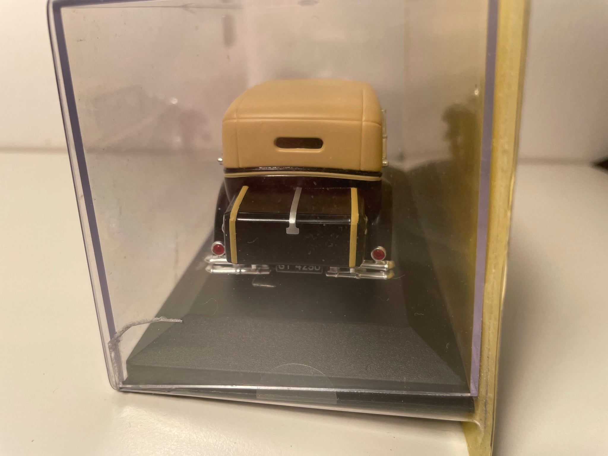 Dieses wunderschöne Miniaturmodell der Isotta Fraschini Tipo 8 von 1930 fängt perfekt das Wesen eines der prestigereichsten Automobile der Zwischenkriegszeit ein. Mit ihrer eleganten schwarzen Lackierung und dem hellbraunen Dach zeigt diese treue Nachbildung die außergewöhnliche Raffinesse, die die luxuriösen italienischen Autos der 1930er Jahre auszeichnete. Dieses Sammlerstück repräsentiert weit mehr als nur ein Miniaturmodell: Es verkörpert die italienische Lebensart und die Leidenschaft für mechanische Exzellenz, die die Hersteller auf der Halbinsel während dieser goldenen Ära des Automobils inspirierte.Eigenschaften der Miniatur