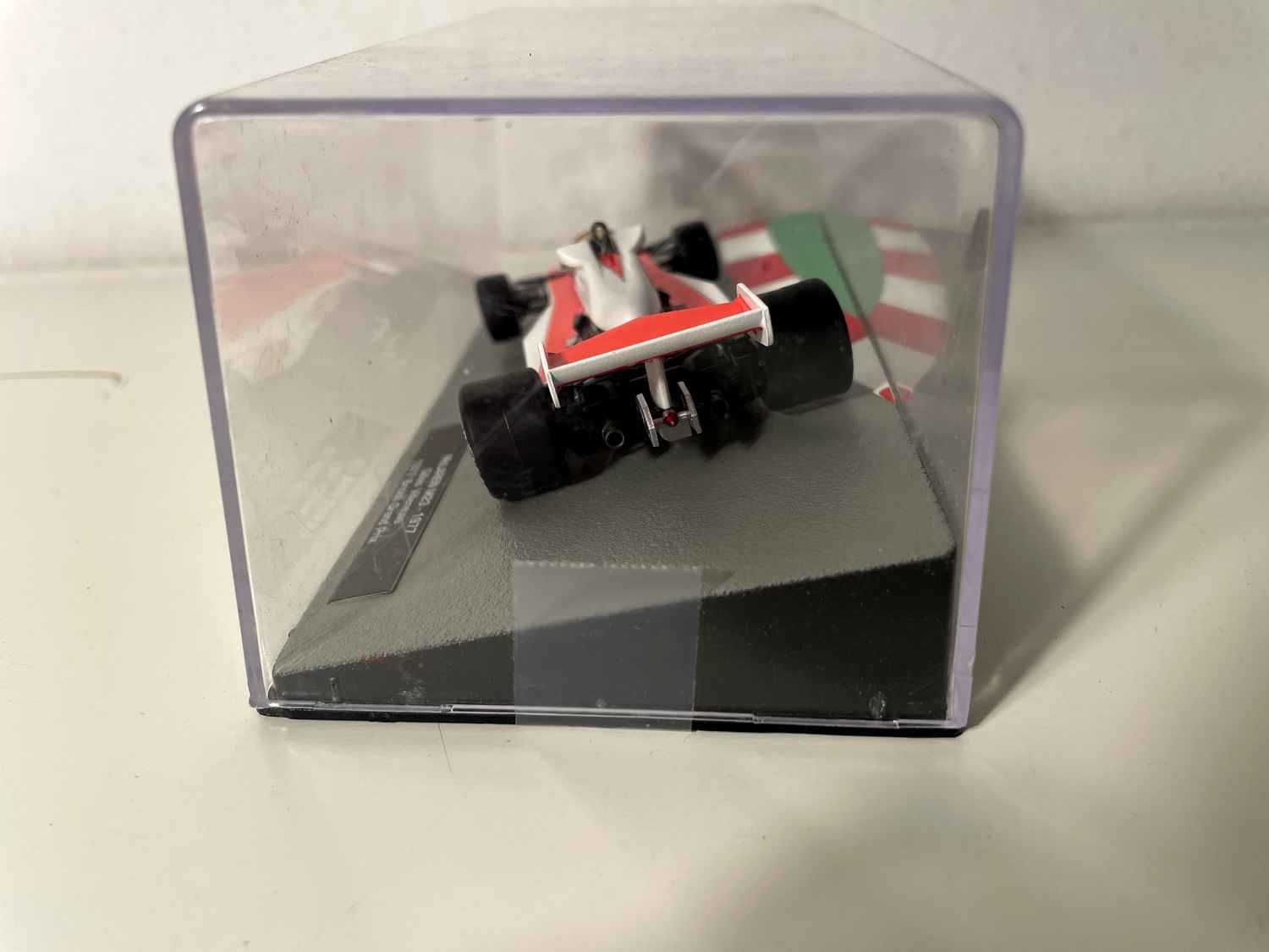 Dieser McLaren M23 passt perfekt in die Welt der Formel-1-Miniaturautos , neben anderen legendären Einsitzern aus den 1970er Jahren. Er harmoniert besonders gut mit den Ferrari-Miniaturen aus derselben Ära und schafft so eine Sammlung, die das goldene Zeitalter der Formel 1 repräsentiert.