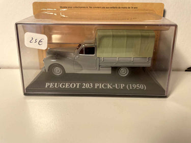 Entdecken Sie diese märchenhafte Miniatur des Peugeot 203 pick-up von 1950, treu in seiner eleganten grauen Lackierung mit einer charakteristischen grünen Plane reproduziert. Diese Nutzfahrzeug-Version der berühmten französischen Limousine ist ein authentisches Zeugnis für die automobilen Ingenieurskunst der Nachkriegszeit.