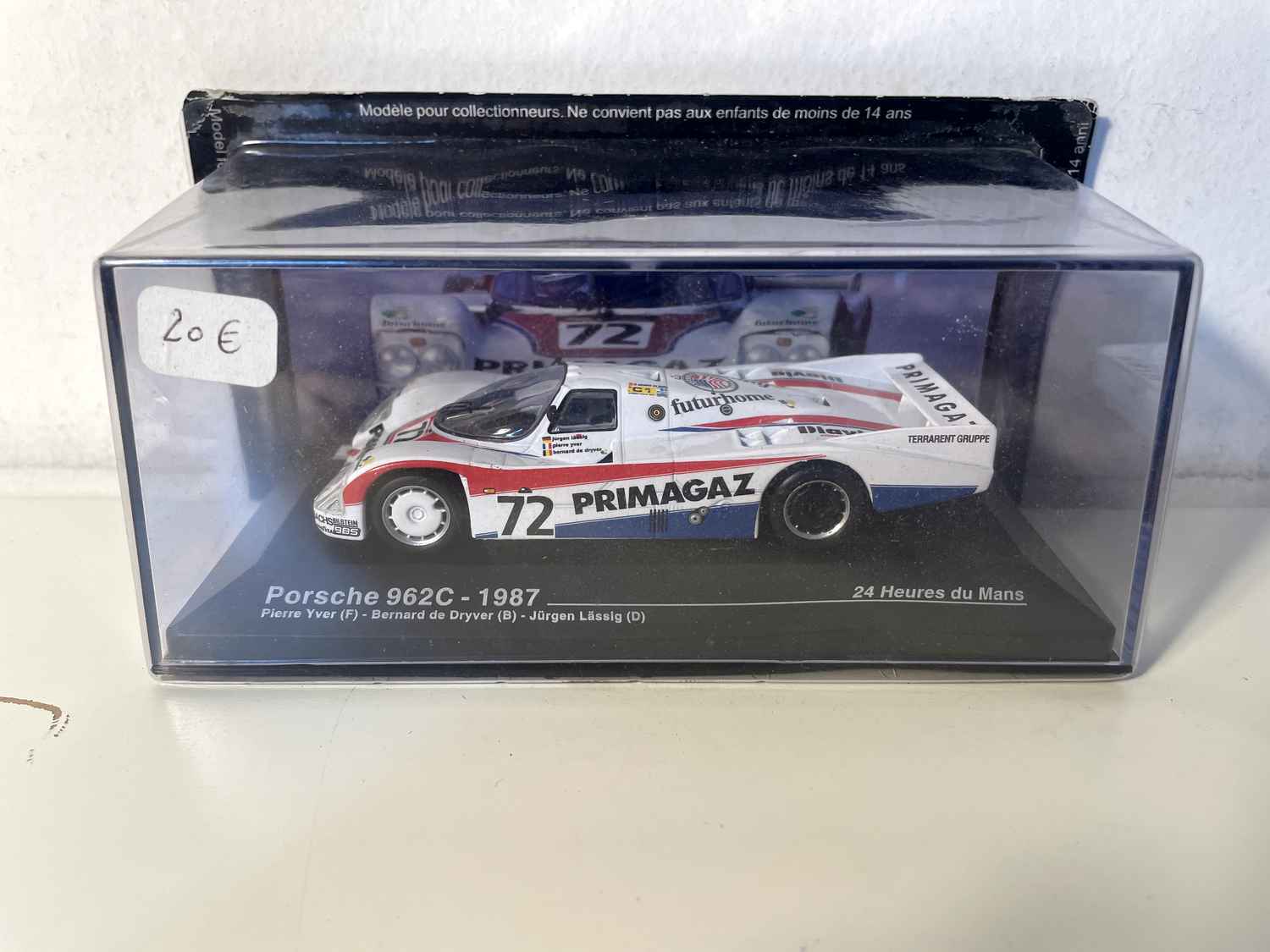 Dieser Porsche 962C findet natürlich seinen Platz im Herzen einer Sammlung legendärer Rennwagen . Er harmoniert perfekt mit anderen emblematischen Langstreckenmodellen, insbesondere den Miniaturen der 24 Stunden von Le Mans, die die Geschichte dieses legendären Ereignisses nachzeichnen.