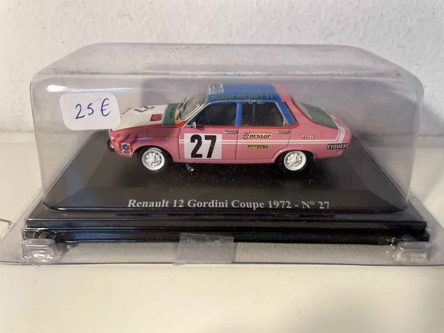 Modellautos Renault 12 Gordini rose, bleue, verte et blanche numéro 27 - Coupe 1972 (blister)