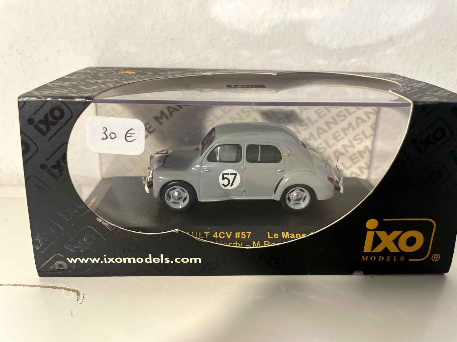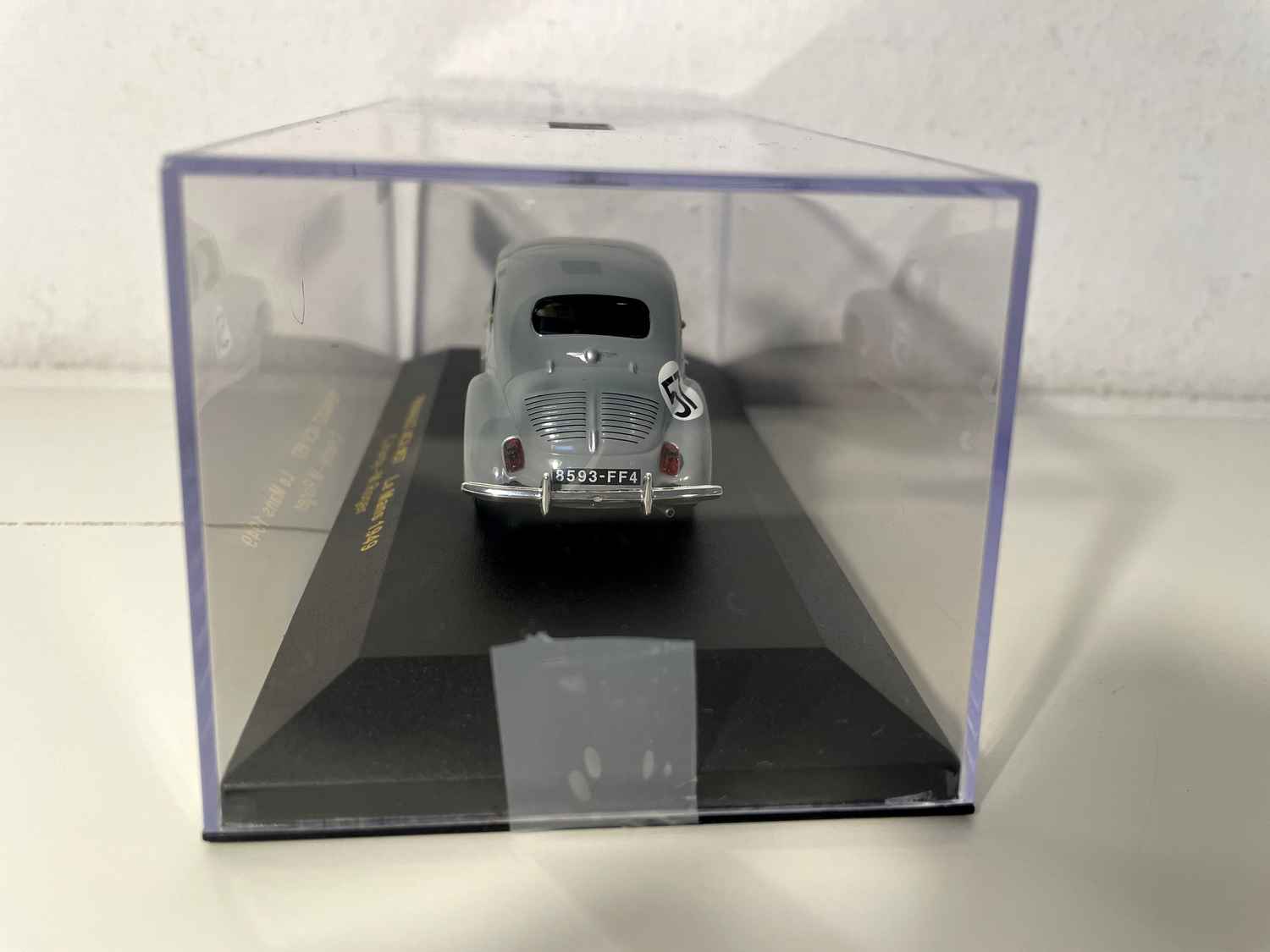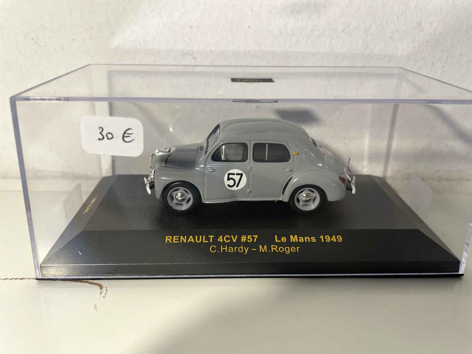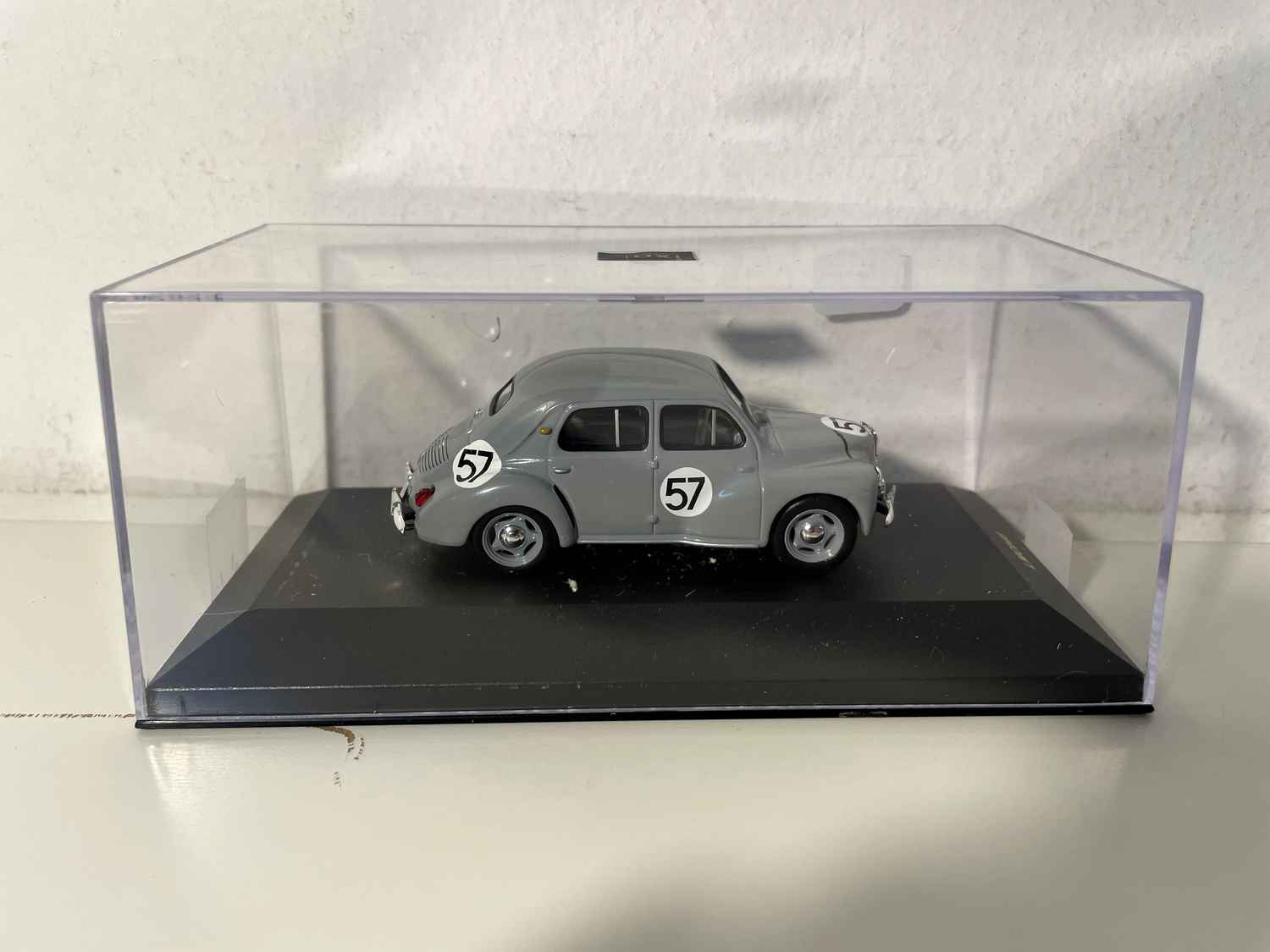Hier ist ein außergewöhnliches Stück, das alle Liebhaber der Automobilgeschichte begeistern wird: der graue Renault 4CV Nummer 57 , der 1949 an den legendären 24 Stunden von Le Mans teilnahm. Diese von IXO hergestellte Miniatur im Maßstab 1:43 fängt den Geist dieser Ära getreu ein, als die kleinen französischen Autos es wagten, die Giganten des Langstreckenrennens herauszufordern.