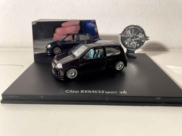 Der Renault Clio Sport V6 in seiner prächtigen, sehr dunkelvioletten Lackierung ist eines der begehrtesten Stücke unter Renault-Modellautosammlern . Diese originalgetreue Reproduktion im Maßstab 1:43 fängt die Essenz dieses außergewöhnlichen französischen Sportwagens perfekt ein, ein wahres UFO in der Automobilwelt der 2000er Jahre.