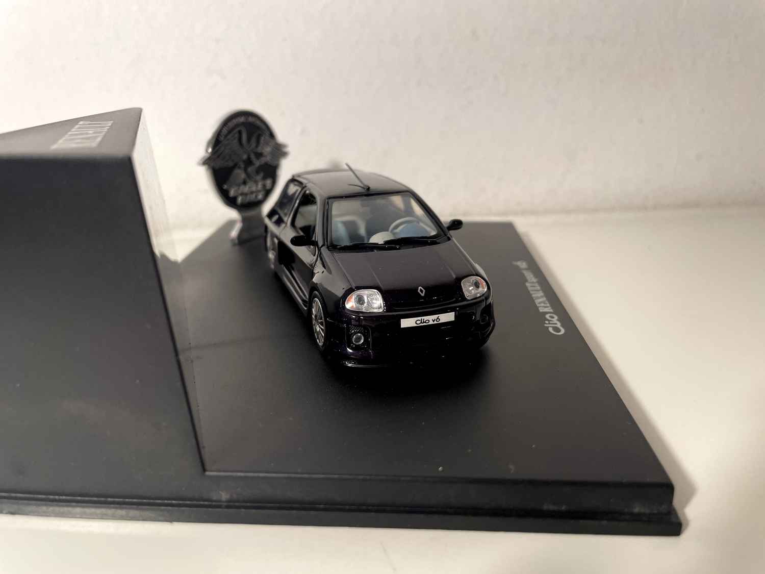 Dieser violette Renault Clio Sport V6 nimmt in der Welt der französischen Miniaturautos einen besonderen Platz ein. Er passt perfekt in eine Sammlung, die modernen Modellen oder außergewöhnlichen Sportwagen gewidmet ist.