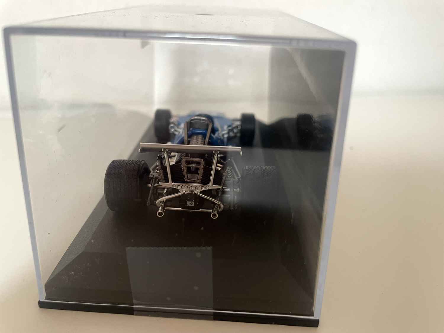 Diese blaue Miniatur des Simca MATRA MS 120 von 1970 stellt einen der kultigsten Prototypen der französischen Automobilgeschichte dar. Diese originalgetreue Reproduktion im Maßstab 1:43 fängt die Essenz dieses außergewöhnlichen Fahrzeugs ein, das zu Beginn der 1970er Jahre für Furore sorgte.