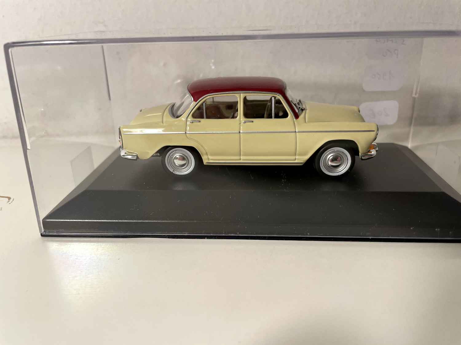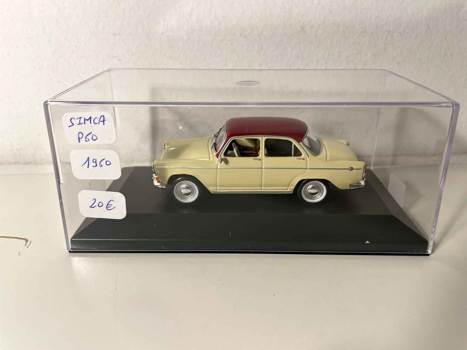 Modellautos Simca P60, beiges und burgunderfarbenes Dach (Auto zur Basis hinzugefügt)