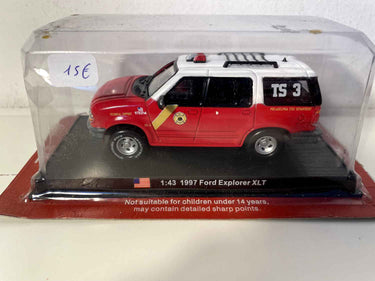 Diese Miniatur des Ford Explorer XLT Fire Brigade passt natürlich in mehrere Sammlungsthemen. Sie passt perfekt in Fahrzeugsammlungen aus den 1990er Jahren , einer entscheidenden Zeit in der Automobilindustrie, die durch das Aufkommen von SUVs und die Entwicklung öffentlicher Dienste gekennzeichnet war.