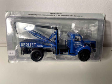 This miniature of the Berliet GLM 10A breakdown truck faithfully represents one of the most iconic breakdown vehicles in French industry. With its characteristic blue livery , this reproduction perfectly captures the robust and functional spirit of this heavyweight that marked French roads for decades.