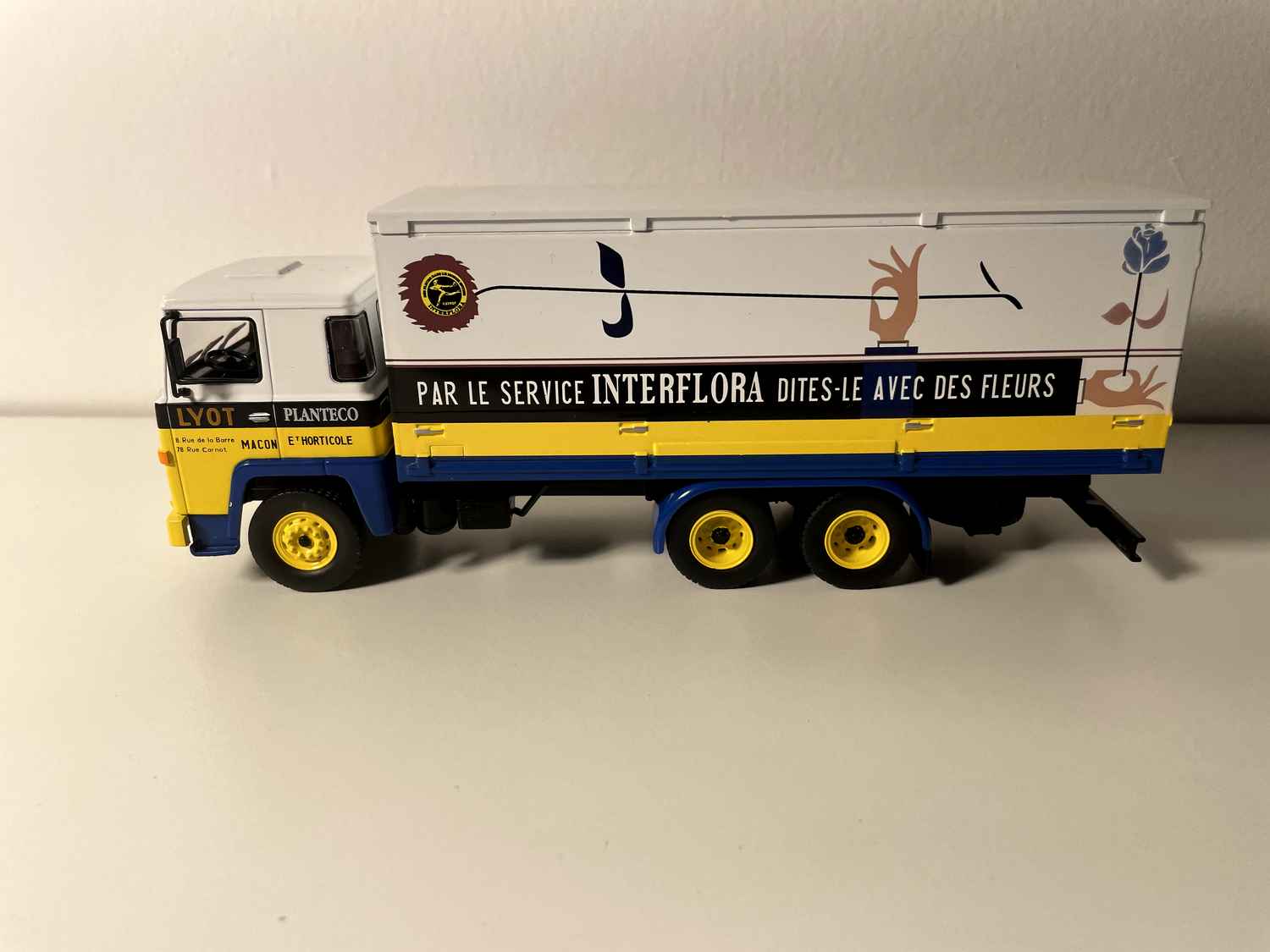 This Scania 140 V8 INTERFLORA model car naturally finds its place among the great references of European utility transport . It fits perfectly into the collections dedicated to heavy goods vehicles and ideally complements the series dedicated to utility vehicles .