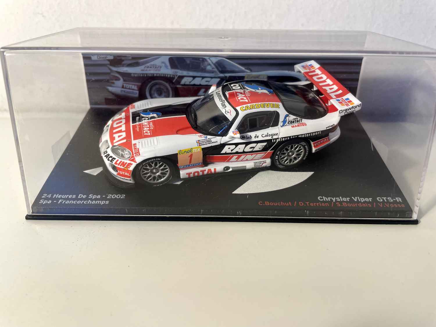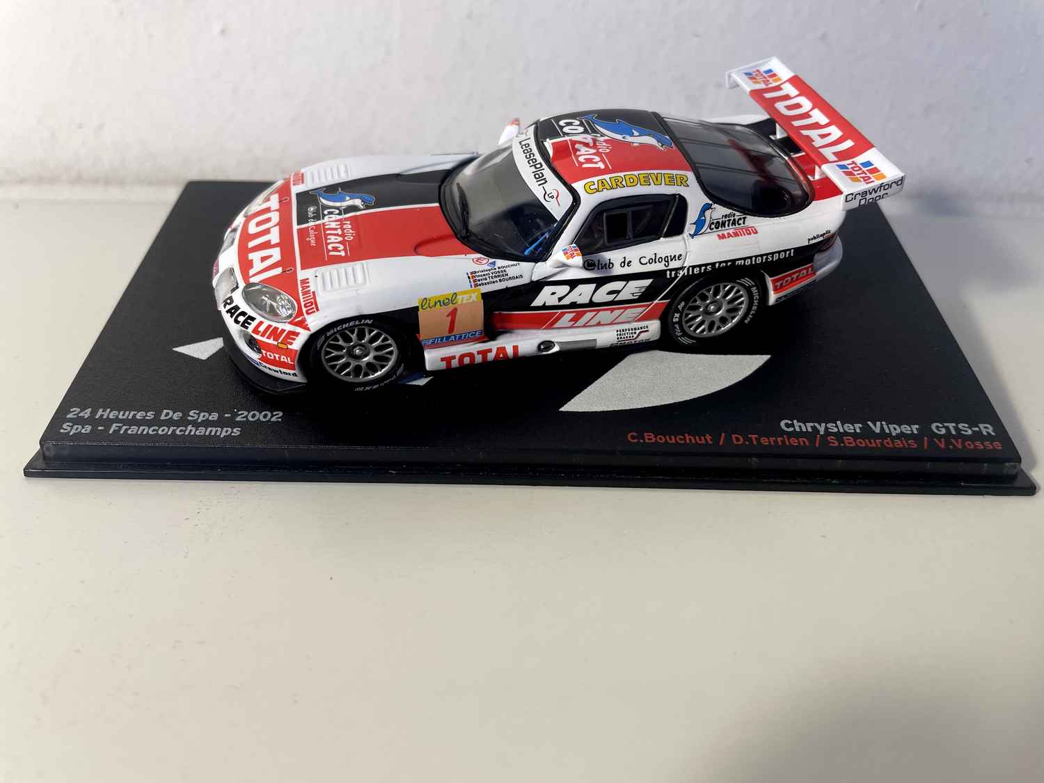 Model Car Chrysler Viper GTS-R blanche, noire et rouge numéro 1 - 24 heures du Spa de 2002 (Spa-Francorchamps)