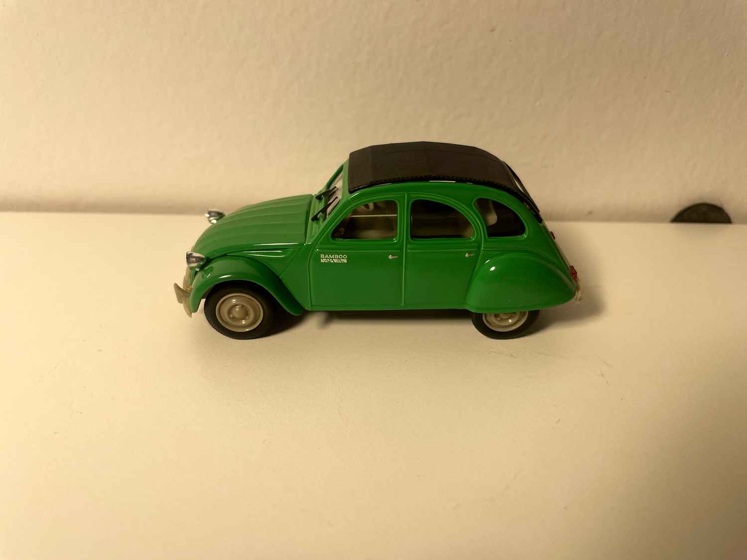 Model Car Citroën 2 CV 6 Green and Black Roof BAMBOO - Norev (Right Hand Drive)