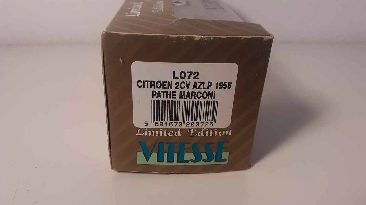 This 1958 Citroën 2CV AZLP in its distinctive burgundy and blette gray livery is more than just a model car. Produced by Vitesse in collaboration with Pathé Marconi, this faithful reproduction captures the essence of one of the French automotive industry's most iconic cars. This collector's item is a testament to the era when the 2CV was beginning to revolutionize popular mobility in France.