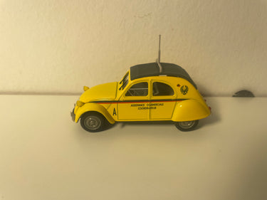 Model Car Citroën 2 CV AZLP yellow with blue and red stripes COMMERCIAL ASSISTANCE COORDINATOR - Norev (in blister)