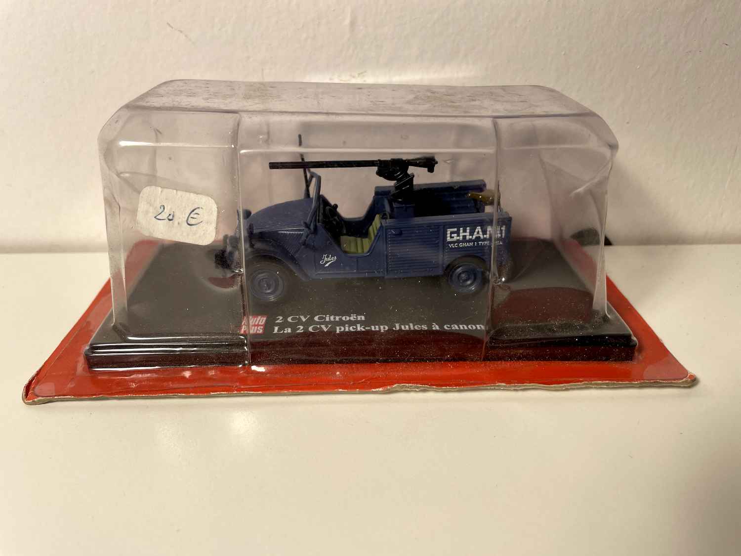This 2CV Jules pick-up with a cannon occupies a unique place in the world of Citroën 2CV model cars . It perfectly complements a collection dedicated to Citroën vehicles , bringing a rare historical and anecdotal dimension.