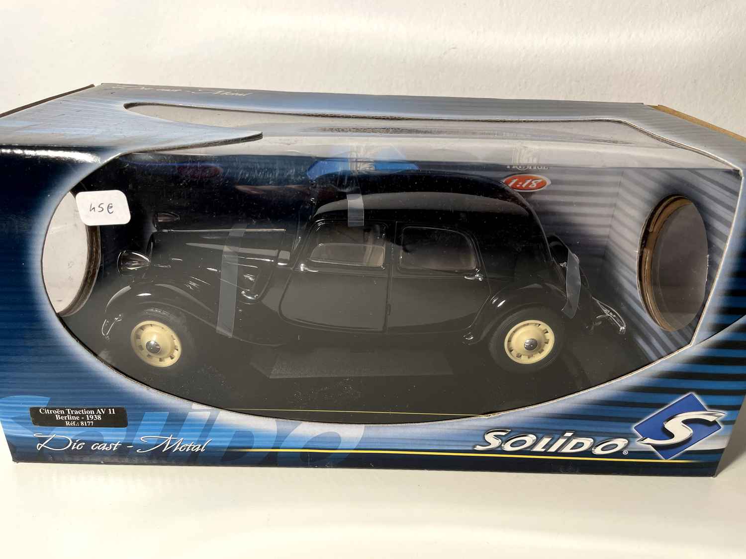 Here is an exceptional piece that will delight fans of French automobiles: the Citroën Traction Avant 11 black sedan from 1938, meticulously reproduced by Solido at a scale of 1/18. This iconic miniature captures all the revolutionary essence of one of the most significant cars in automotive history.
