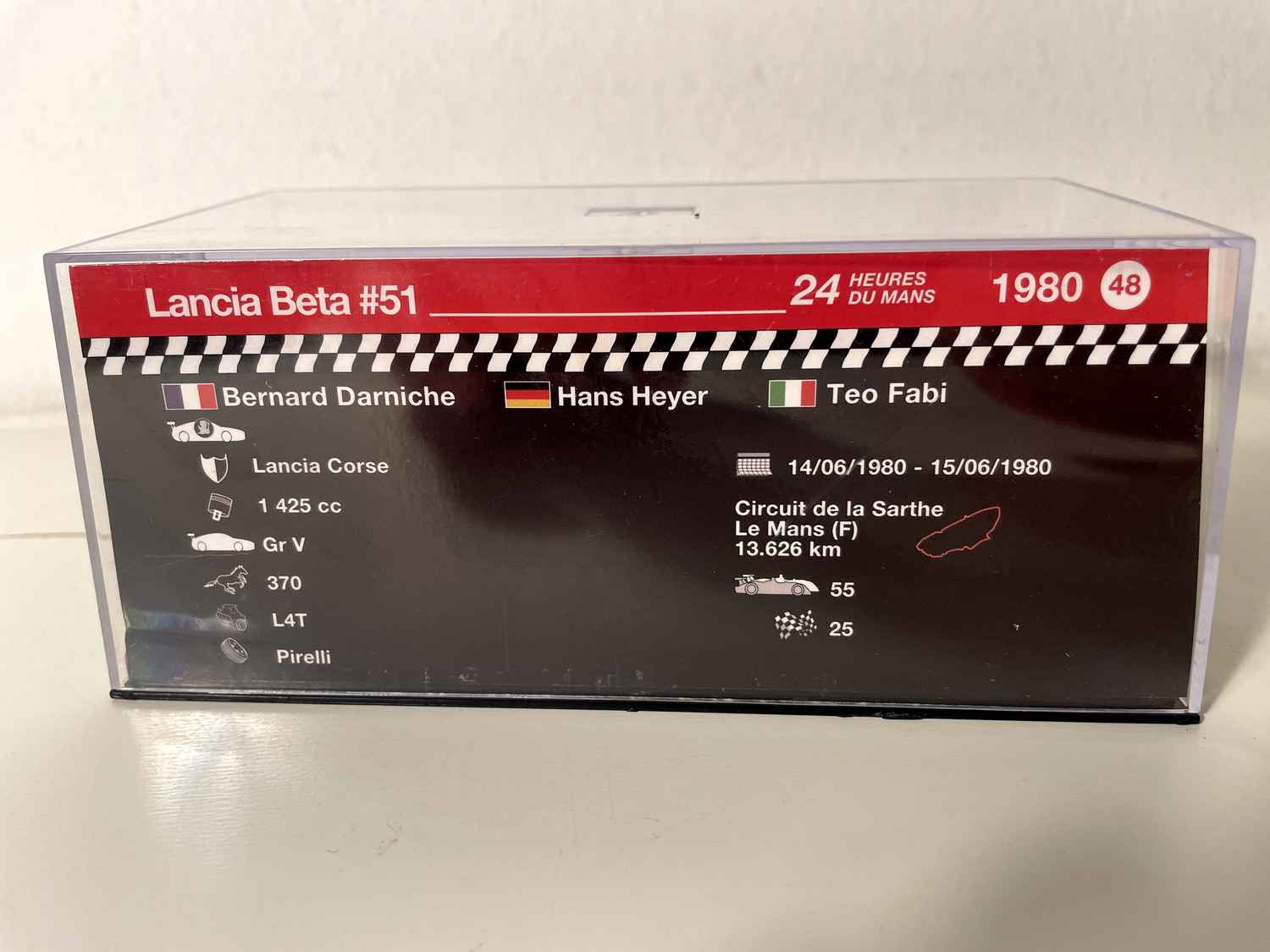 An authentic collector's item, this miniature appeals to car enthusiasts and collectors eager to preserve the history of motorsport. Driven by the exceptional trio Hans Heyer, Bernard Darniche, and Téo Fabi, this Lancia Beta embodies the spirit of conquest that animated Italian manufacturers in their quest for endurance glory.