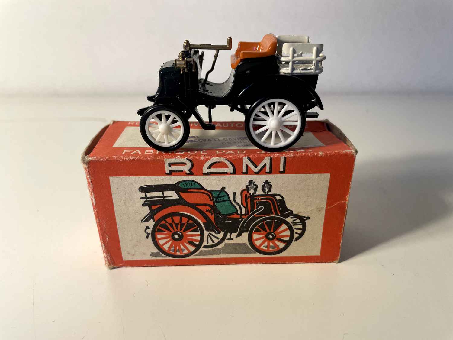 Discover this exceptional miniature representing the Panhard et Levassor "Tonneau" of 1895, a true witness to the early days of French automobiles. This faithful reproduction, part of the RAMI collection and made by JMK, captures the very essence of the horse-drawn vehicles that revolutionized transport at the end of the 19th century.