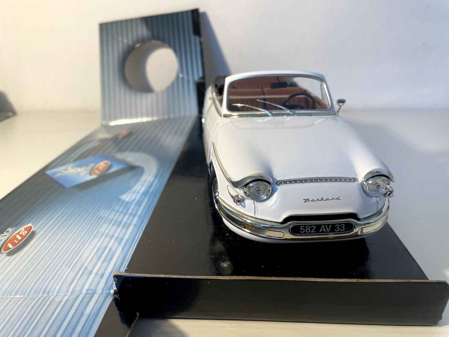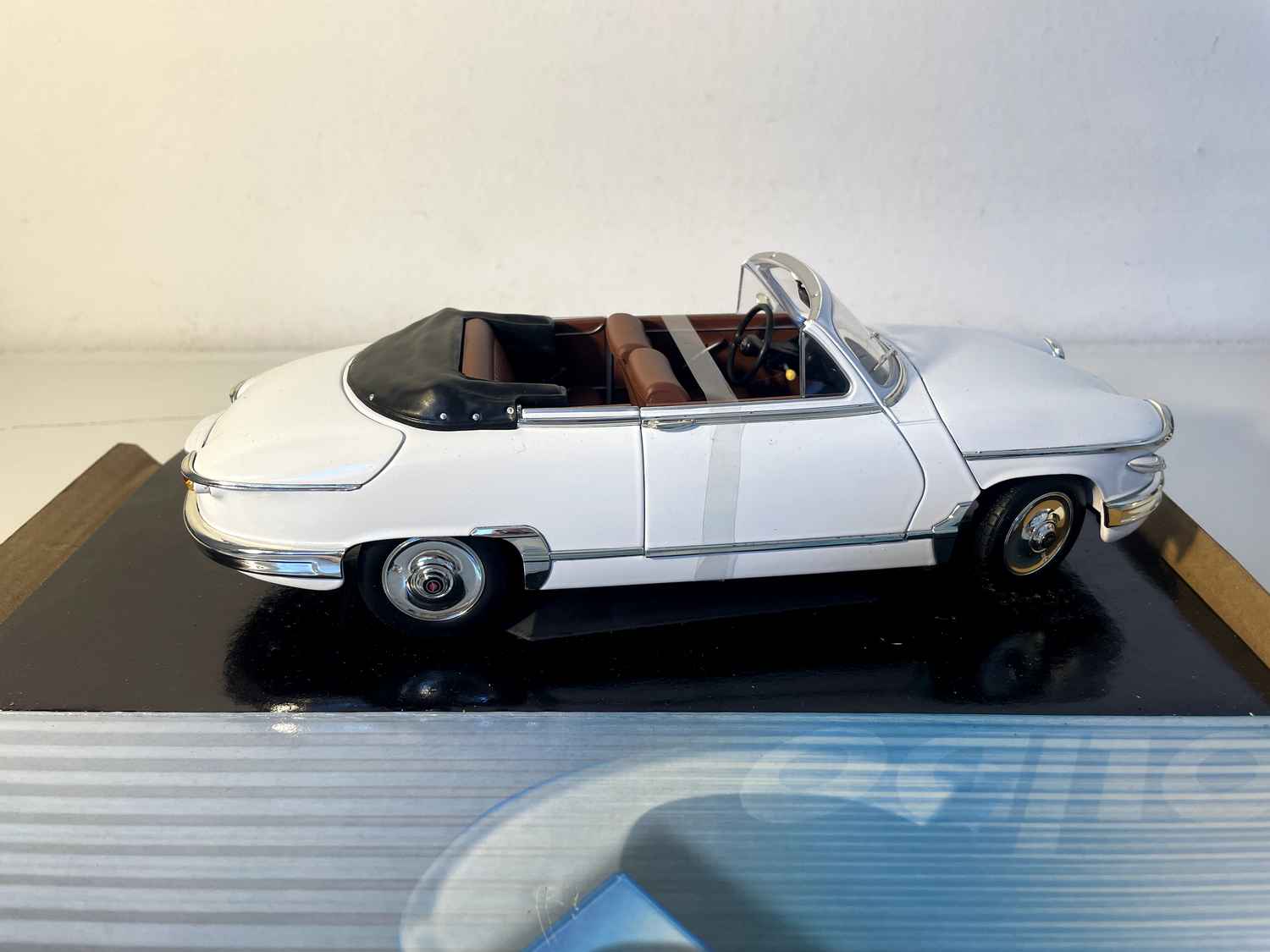 Discover this superb white Panhard PL17 convertible in miniature version, a faithful reproduction of the elegant French car from the 1950s. This Solido miniature reference 8174 captures all the essence of post-war automotive refinement, with its pure lines and timeless charm.