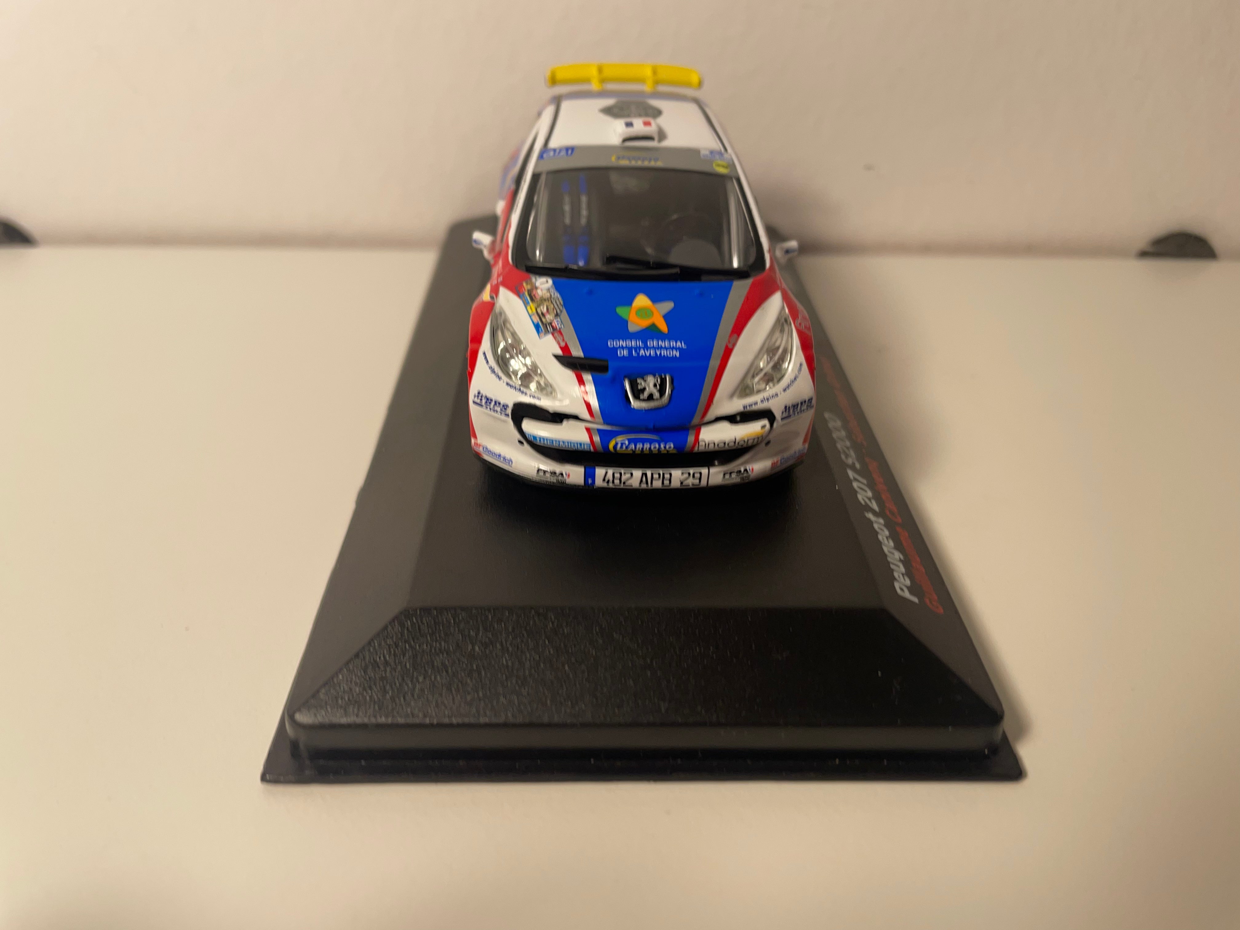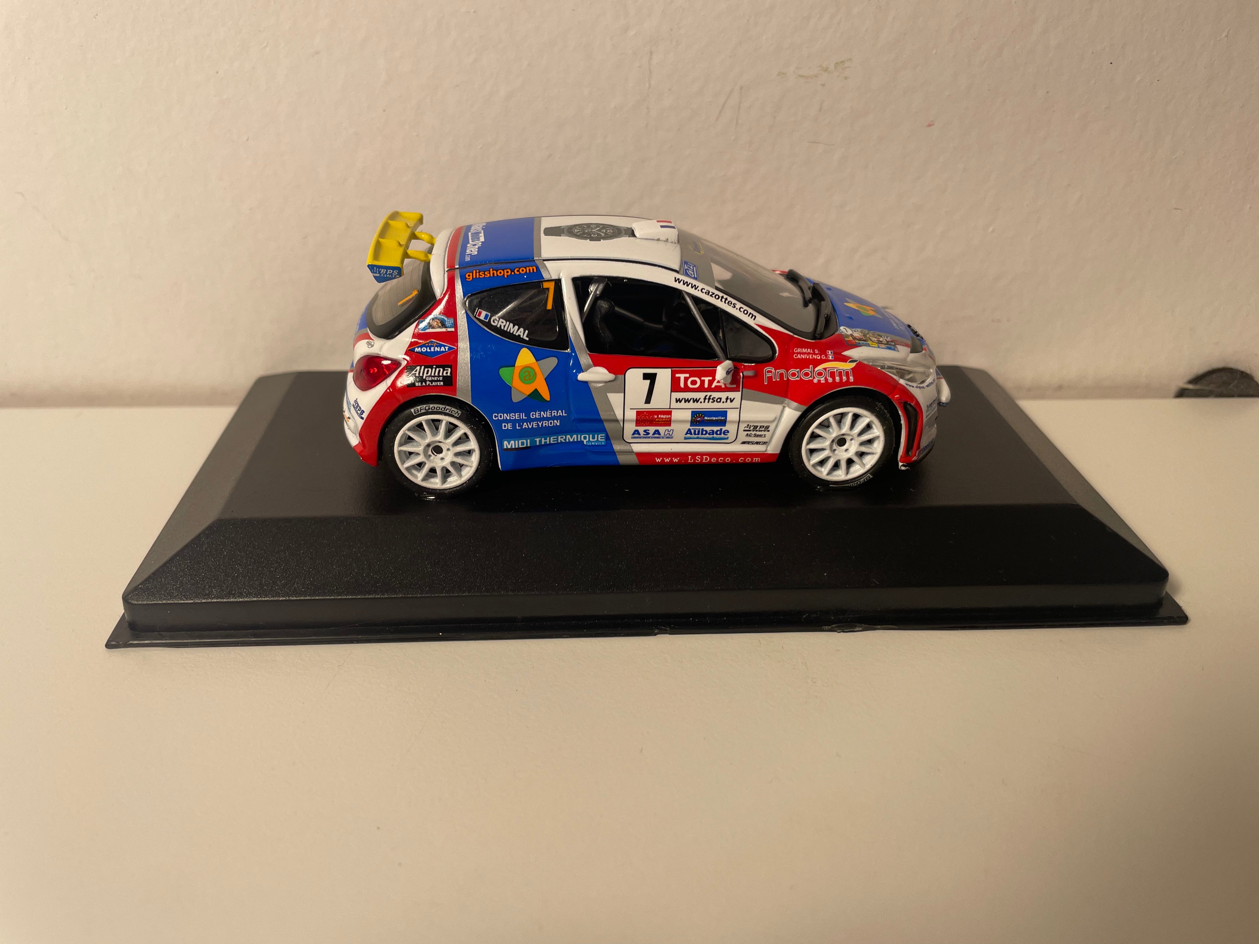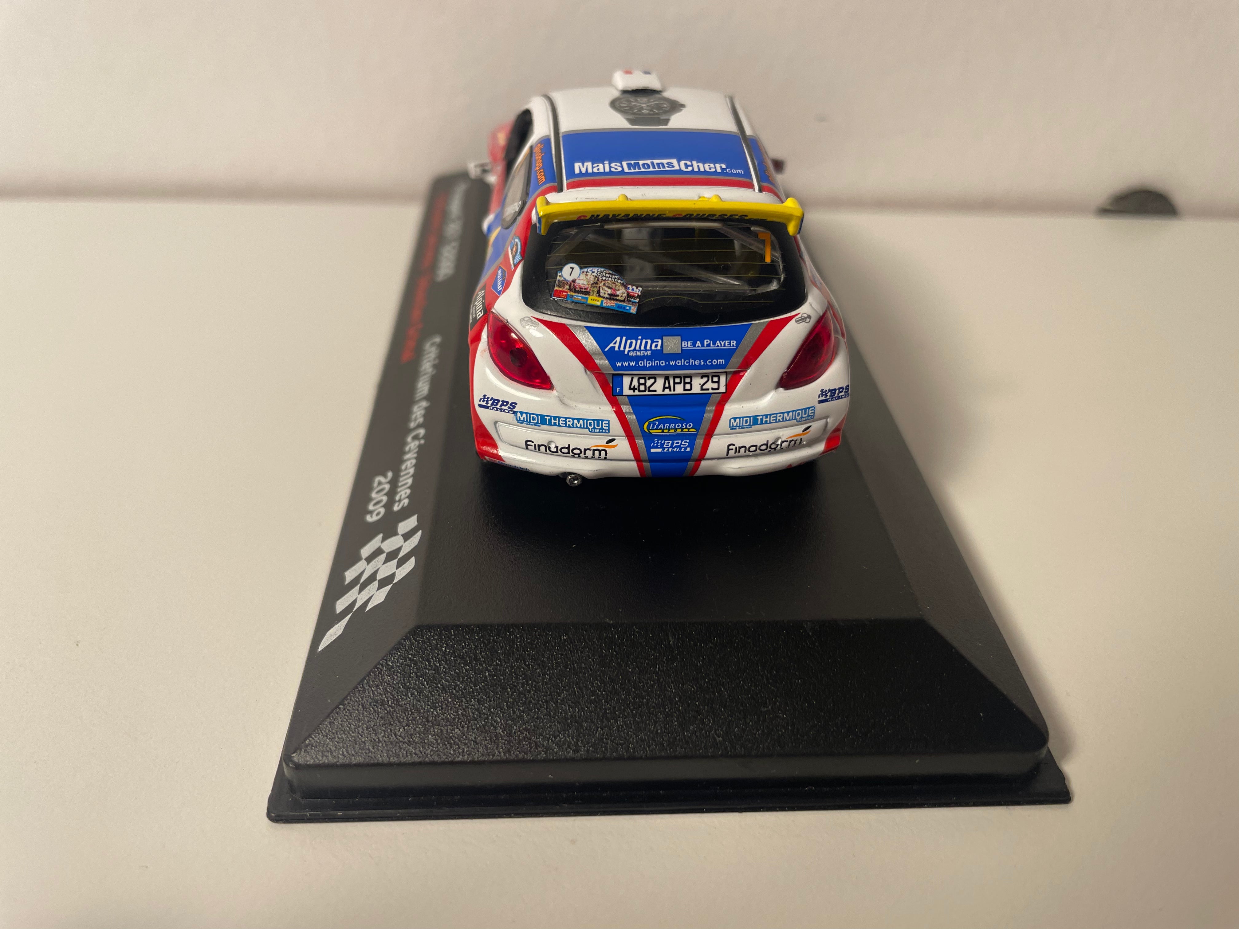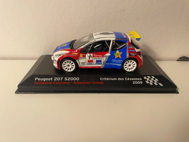 Model Car Peugeot 207 S2000 blue, white and red number 7 - Cévennes Rally 2009