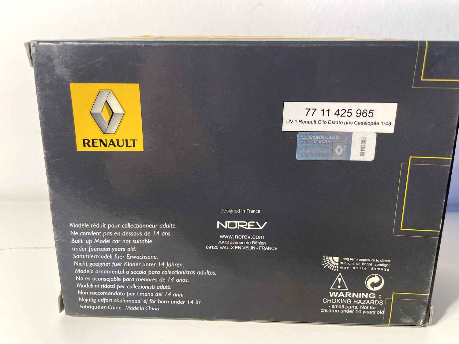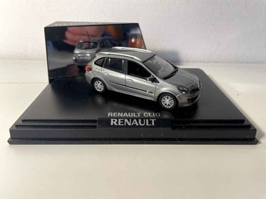 This **grey Renault Clio model car**, 1:43 scale, faithfully represents one of the most iconic models in French automotive history. Presented in its **rectangular protective case**, this collector's item captures the essence of a car that has influenced several generations of motorists.
