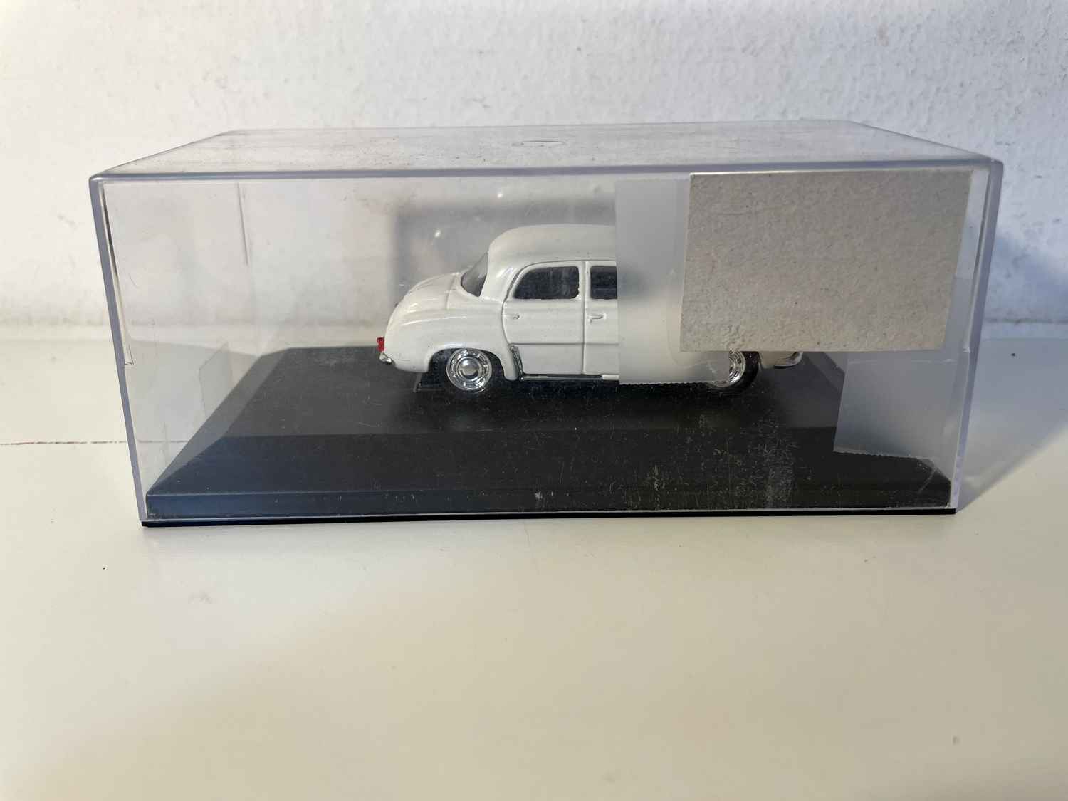 The 1962 white Renault Dauphine model car represents one of the most iconic models of French automobiles from the 1950s and 1960s. This faithful 1:43 scale reproduction perfectly captures the elegance and simplicity of this popular sedan that influenced an entire generation of motorists.