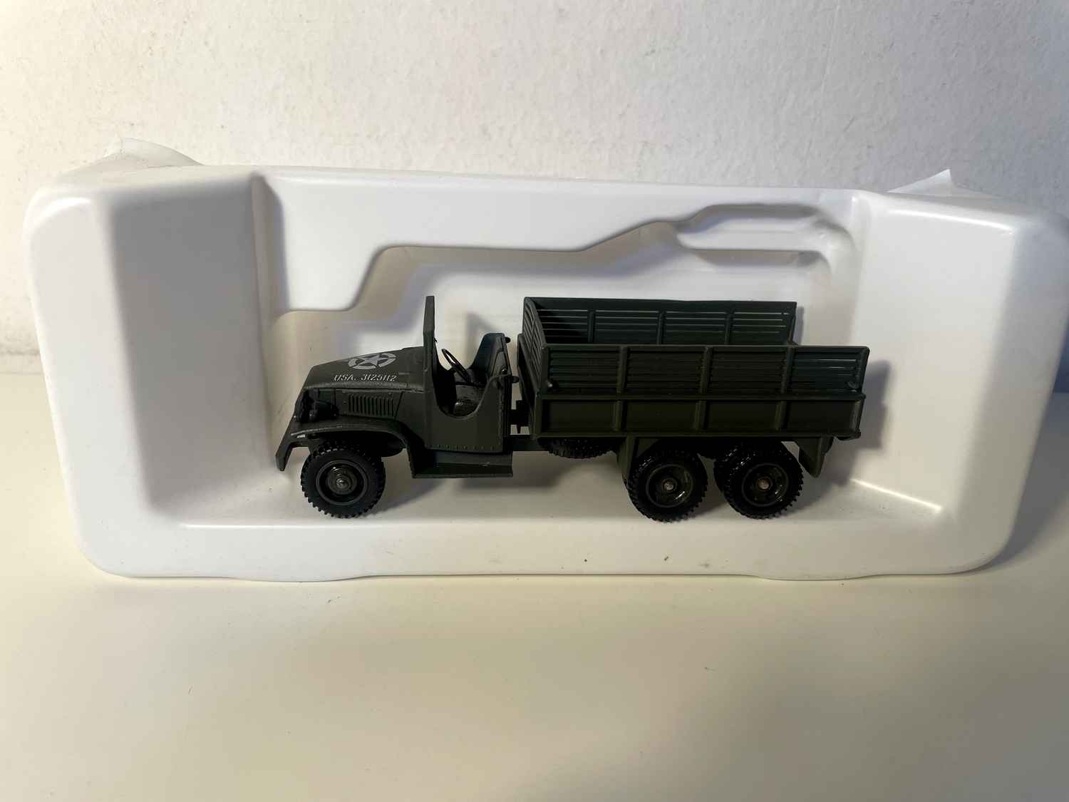 Discover this remarkable military miniature representing a GMC truck of the American army , faithfully reproduced by the French manufacturer Solido. This authentic piece testifies to the excellence of the brand in the reproduction of historical military vehicles.