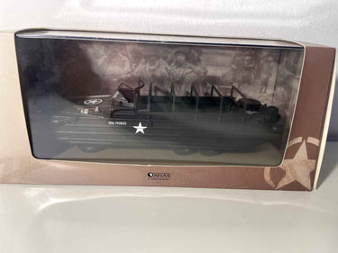 This military miniature depicts the GMC DUKW 353 , one of the most iconic amphibious vehicles of World War II. Affectionately nicknamed "Duck" by Allied soldiers, this versatile vehicle embodies American ingenuity in the face of the logistical challenges of combined land-sea operations.