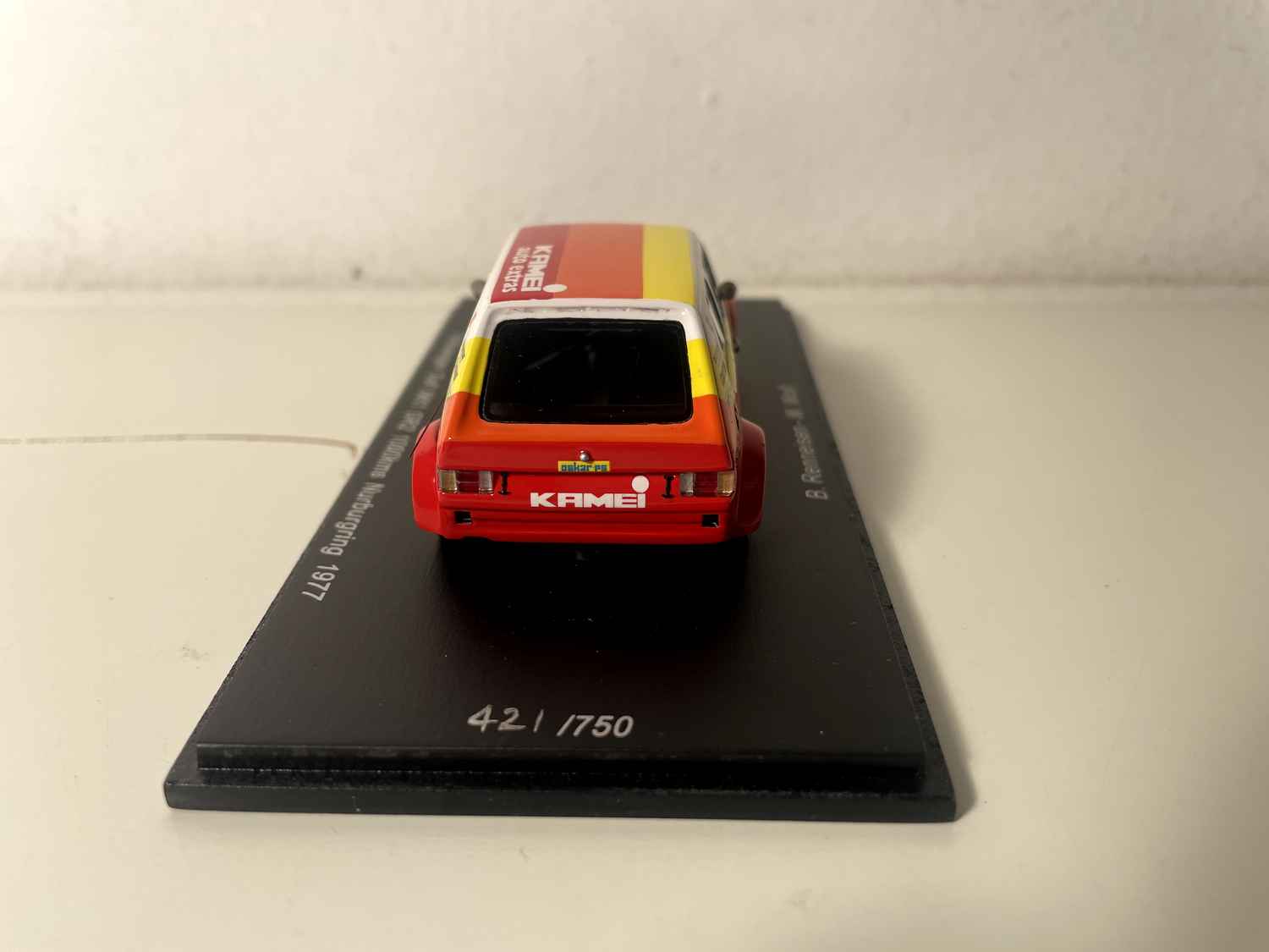This Volkswagen Golf GR2 SPARK naturally finds its place in the world of competition miniatures. It fits perfectly alongside other race models from the 1970s, a golden era of endurance racing. Collectors will particularly appreciate its rarity and historical authenticity, as SPARK is known for the precision of its reproductions of racing cars.