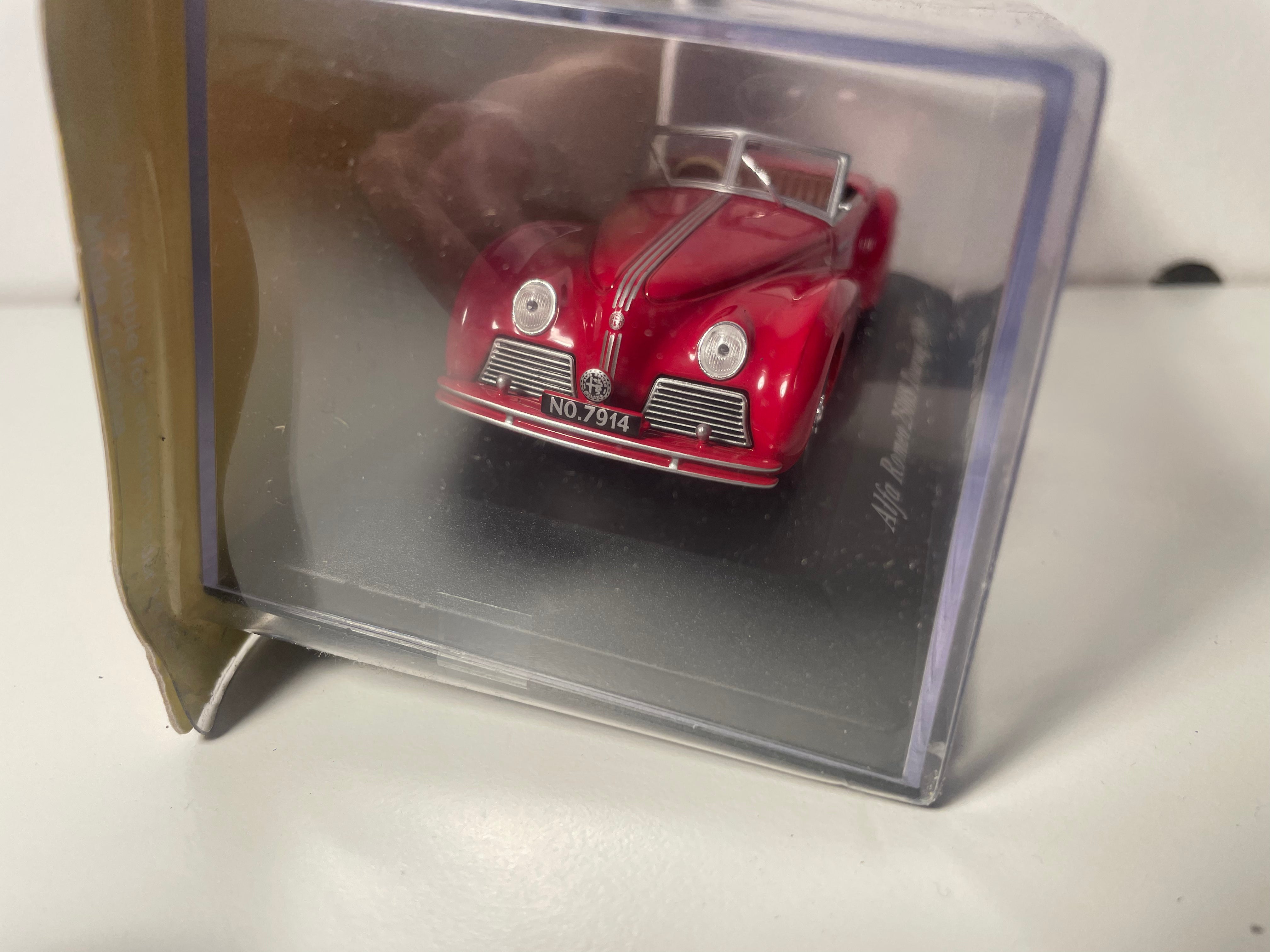Este magnífico Alfa Romeo 2500S Touring rojo de 1939 encarna la excelencia del automóvil italiano de antes de la guerra en una reproducción fiel a 1/43. Esta miniatura captura toda la elegancia y deportividad de una de las más bellas realizaciones de la colaboración entre Alfa Romeo y la carrocería Touring de Milán.