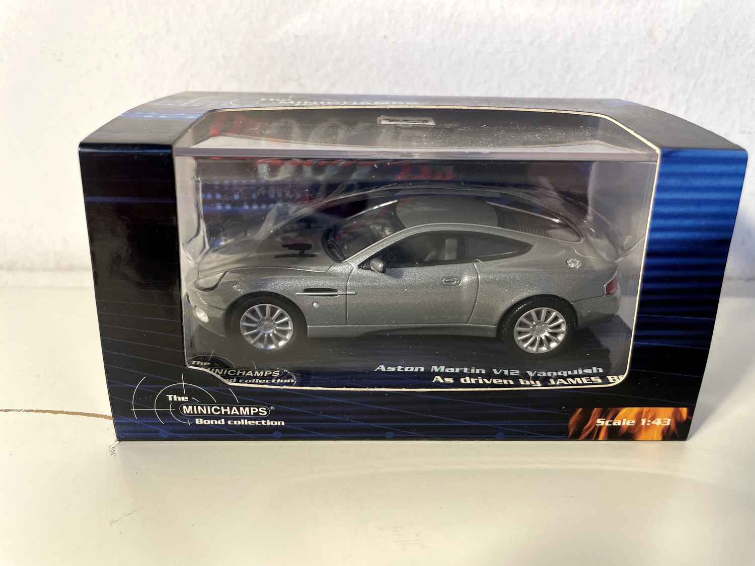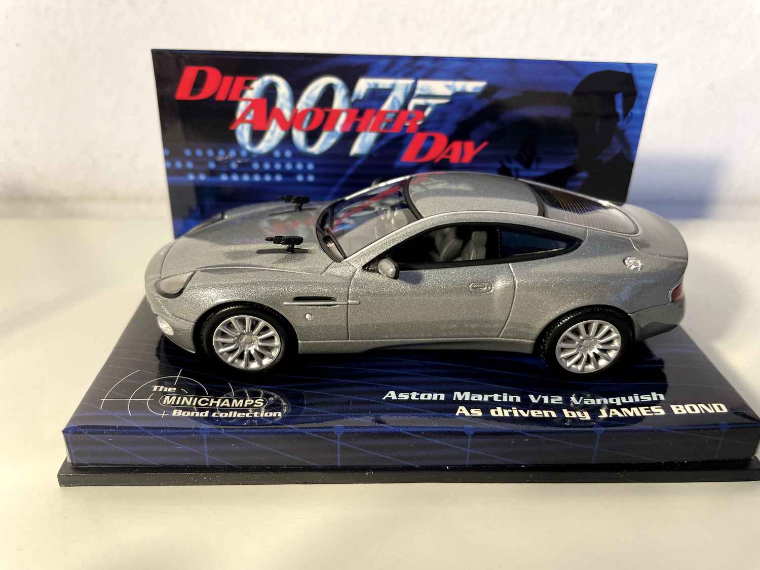 Coche en Miniatura Aston Martin V12 Vanquish gris - JAMES BOND - MUERE UN DÍA - MINICHAMPS