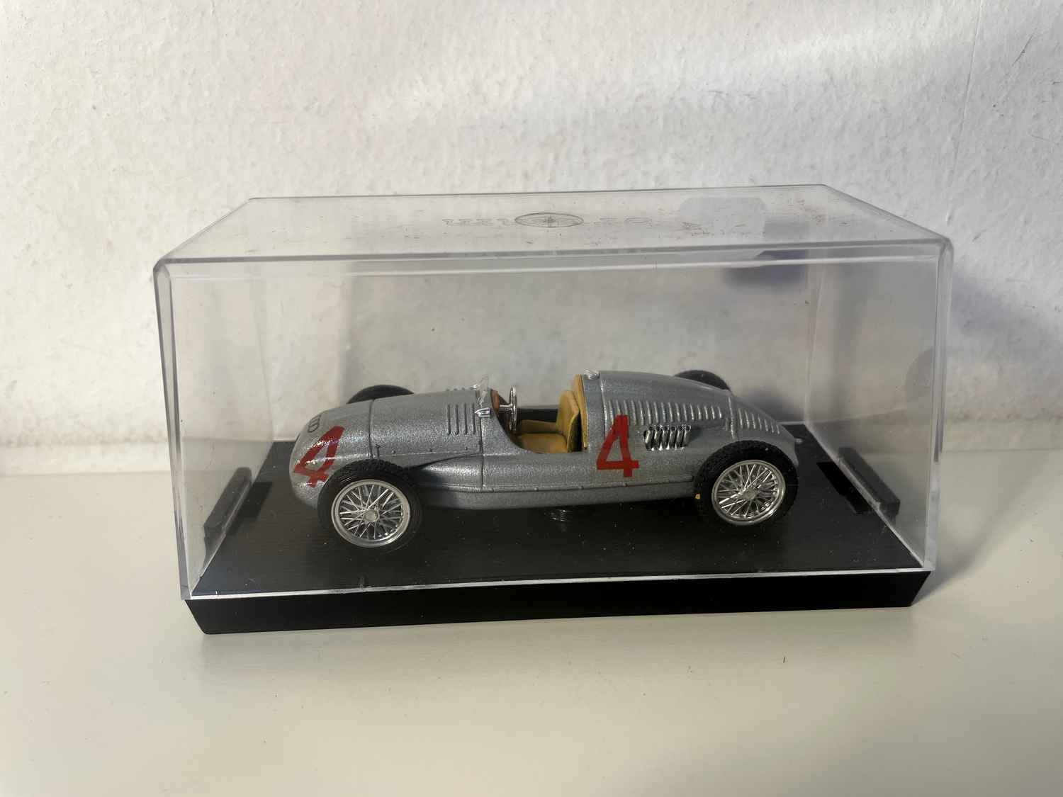 Coche en Miniatura Auto Union tipo D HP 420 de 19387, gris número 4 - coche de carreras (Brumm R109)