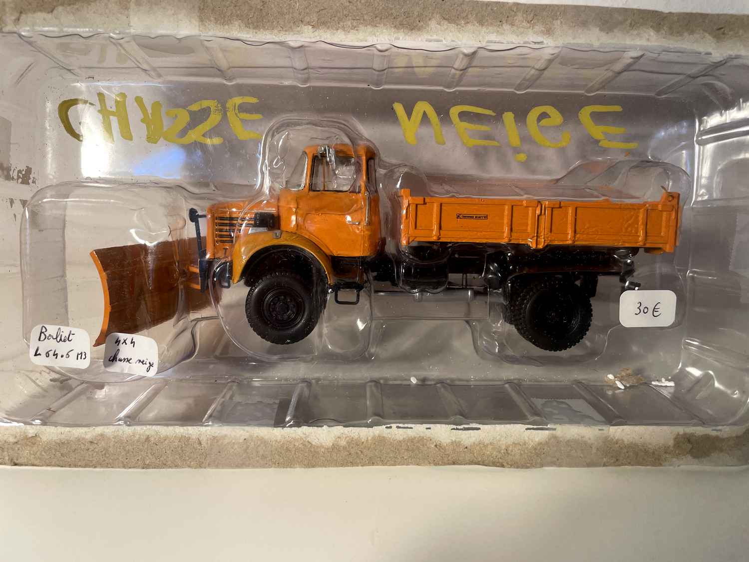 Descubre esta magnífica reproducción del camión quitanieves Berliet L 64.6 M3 4x4 en su característico color naranja, publicado por Hachette como parte de su prestigiosa colección dedicada a los vehículos de servicio franceses. Esta miniatura a escala 1/43 captura perfectamente la esencia de estas robustas máquinas quitanieves que han marcado la historia del mantenimiento de carreteras en Francia.