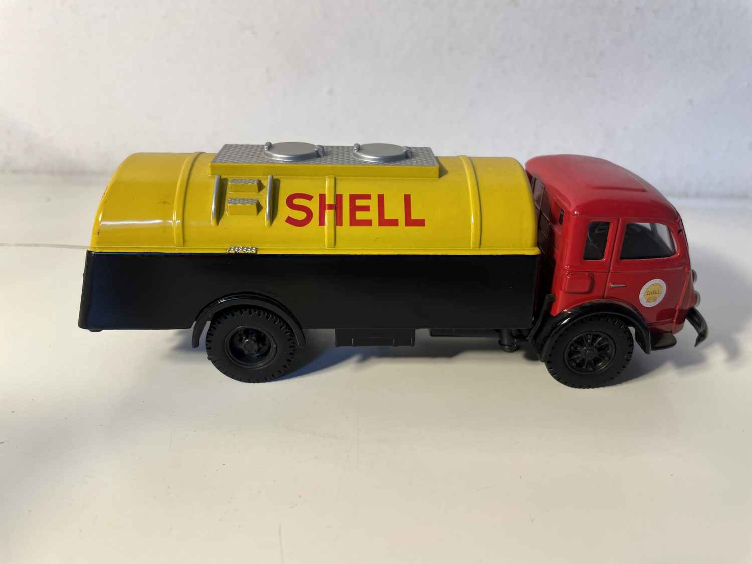 Equipado con un motor diésel económico y una carga útil optimizada, el Fainéant se destacaba por su notable versatilidad. Su cabina moderna ofrecía un confort inédito para la época, mientras que su chasis robusto permitía múltiples configuraciones según las necesidades específicas de los transportistas. Esta versión Shell luce la librea característica de la compañía petrolera, con sus colores rojo y amarillo que marcaban la presencia de la marca en las carreteras europeas.