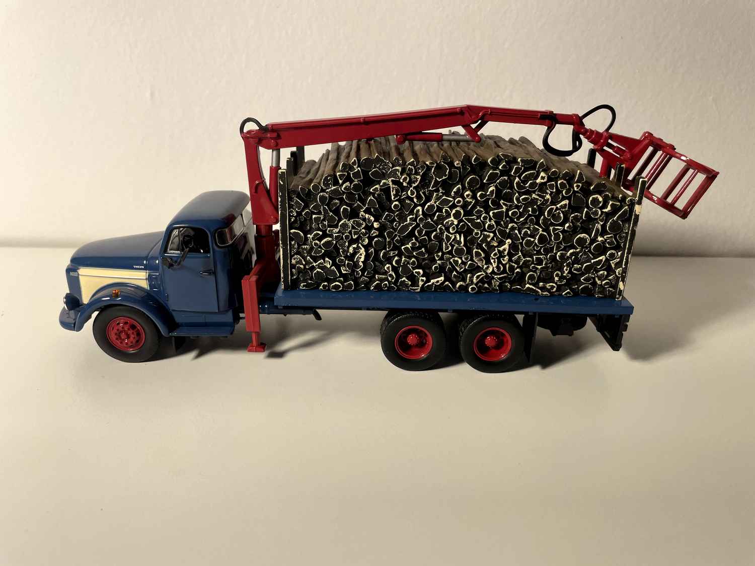 Esta reproducción del transportador de madera Volvo N88 ocupa un lugar privilegiado en el mundo de las miniaturas de vehículos pesados. Encaja a la perfección en colecciones temáticas dedicadas al transporte profesional y es un complemento ideal para vehículos utilitarios de la misma época.