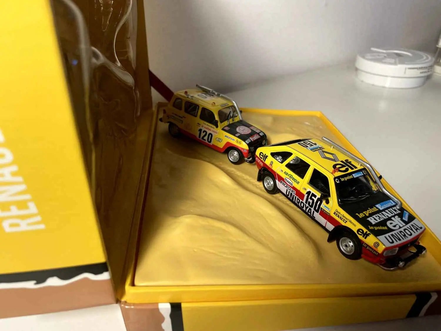 Esta fiel reproducción celebra la aventura del París-Dakar a través de dos vehículos icónicos que contribuyeron a las páginas más hermosas de esta legendaria competición. Cada detalle ha sido cuidadosamente reproducido para ofrecer a los coleccionistas una pieza excepcional que honra el legado deportivo de Renault.