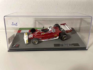 Esta miniatura del Ferrari 312 T2 número 11 de 1977 inmortaliza uno de los monoplazas más emblemáticos de la historia de la Fórmula 1. Pilotado por el legendario Niki Lauda en el Gran Premio de Brasil de 1977 , esta fiel reproducción captura la esencia de esta época dorada del automovilismo.