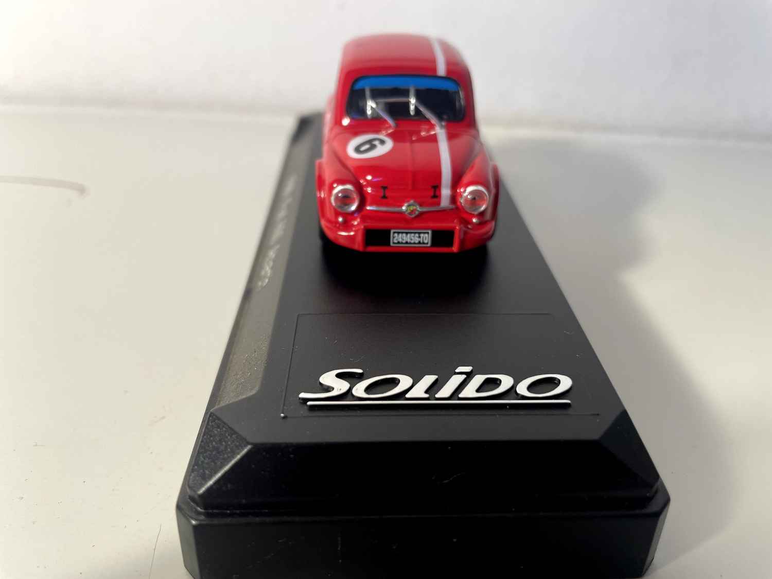 Referenciado con el número 4590 en el catálogo de Solido, esta miniatura es testimonio del saber hacer del fabricante francés en la reproducción de coches deportivos italianos. Su brillante color rojo y su número de carrera 6 evocan inmediatamente la atmósfera de los circuitos europeos de los años sesenta.