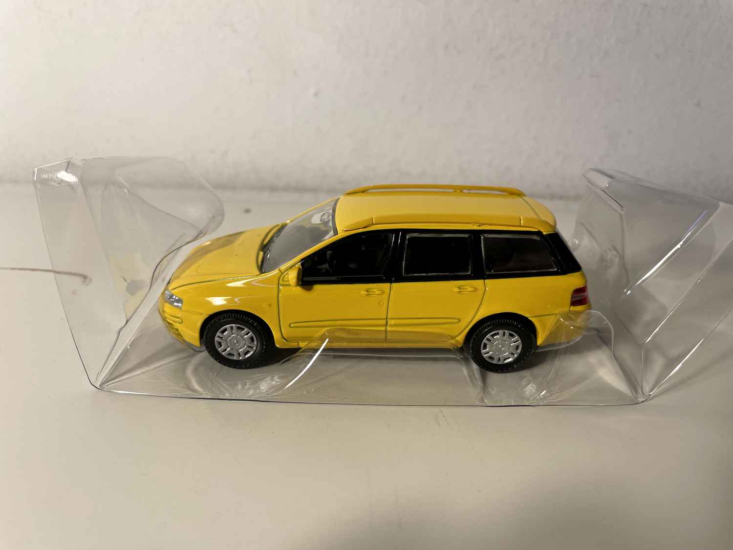 Este Fiat Stilo Familiar amarillo encuentra naturalmente su lugar en cualquier colección dedicada a automóviles italianos o vehículos de los años 2000. Se combina perfectamente con otros modelos Fiat de la misma época, creando un conjunto coherente que ilustra la evolución del diseño transalpino.