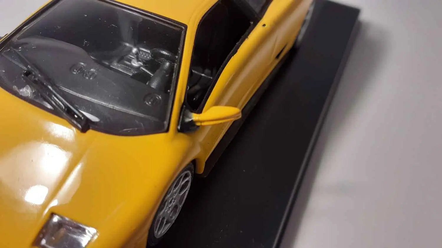Coche en Miniatura Lamborghini Diablo amarillo (con espejo retrovisor pegado)
