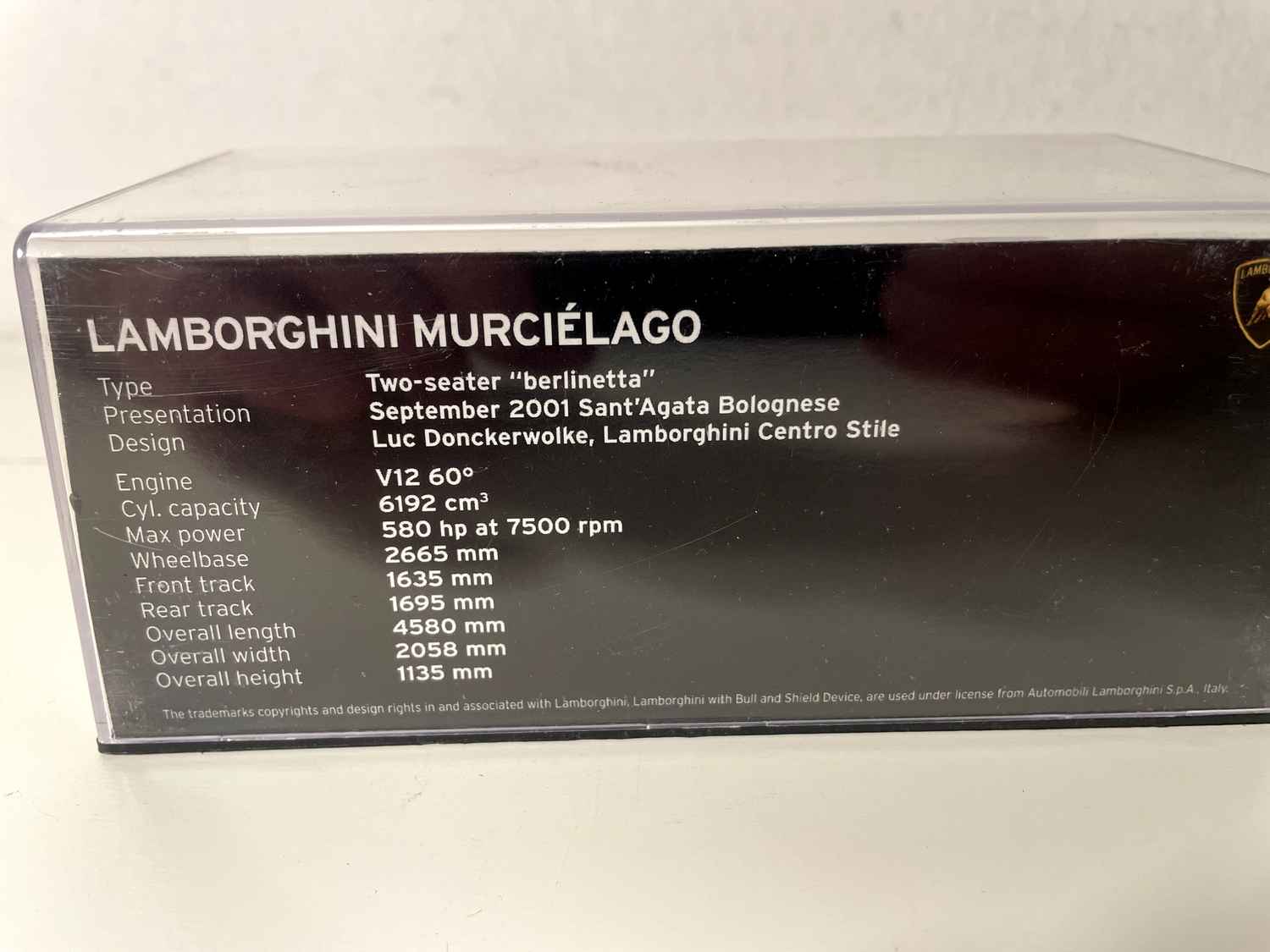 Verdadero objeto de colección para los amantes de los automóviles italianos, esta miniatura encuentra su lugar naturalmente junto a las obras más hermosas de Sant'Agata Bolognese, testimoniando la evolución estilística de Lamborghini a principios de los años 2000.