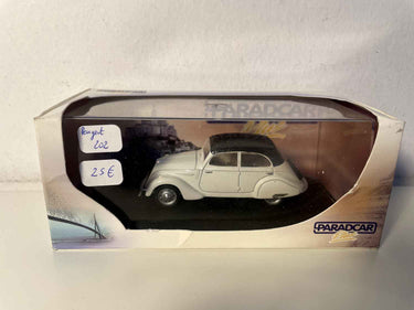 Coche en Miniatura Peugeot 202 convertible con capota beige y negra (Paradcar)