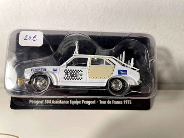Coche en Miniatura Peugeot 504 blanca asistencia equipo Peugeot del Tour de Francia de 1975