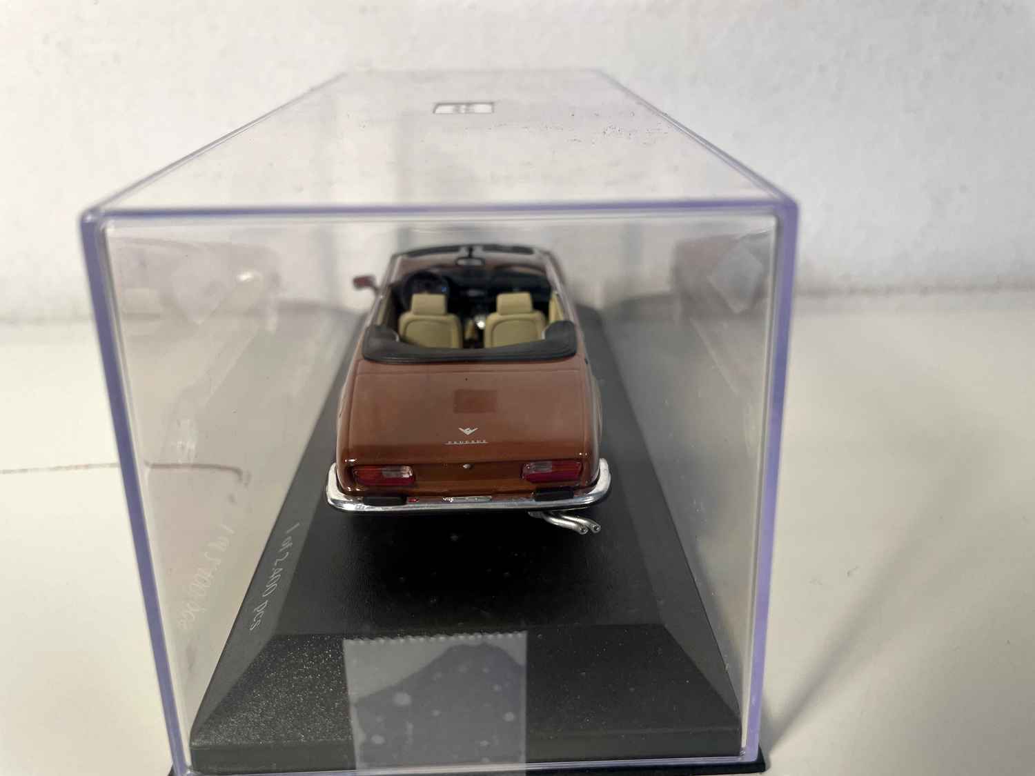 Producida a escala 1/43 , esta miniatura se ajusta perfectamente a los estándares de colección más extendidos. Su codiciado acabado marrón dorado la convierte en una pieza ideal para los amantes de los descapotables en miniatura y los coches clásicos de esta próspera época del automóvil francés.